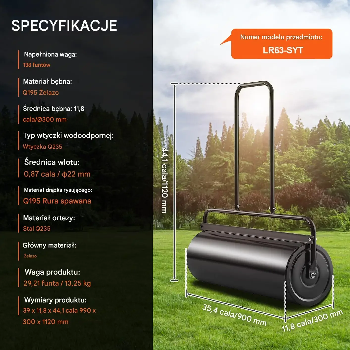 Lekkie i wydajne wyrównywanie trawnika. Trwałe rolki aluminiowe i podstawa ze stali nierdzewnej. Grubość głowicy: 0,2 cm. Długość głowicy: 121,9 cm. Szerokość głowicy: 25,4 cm.