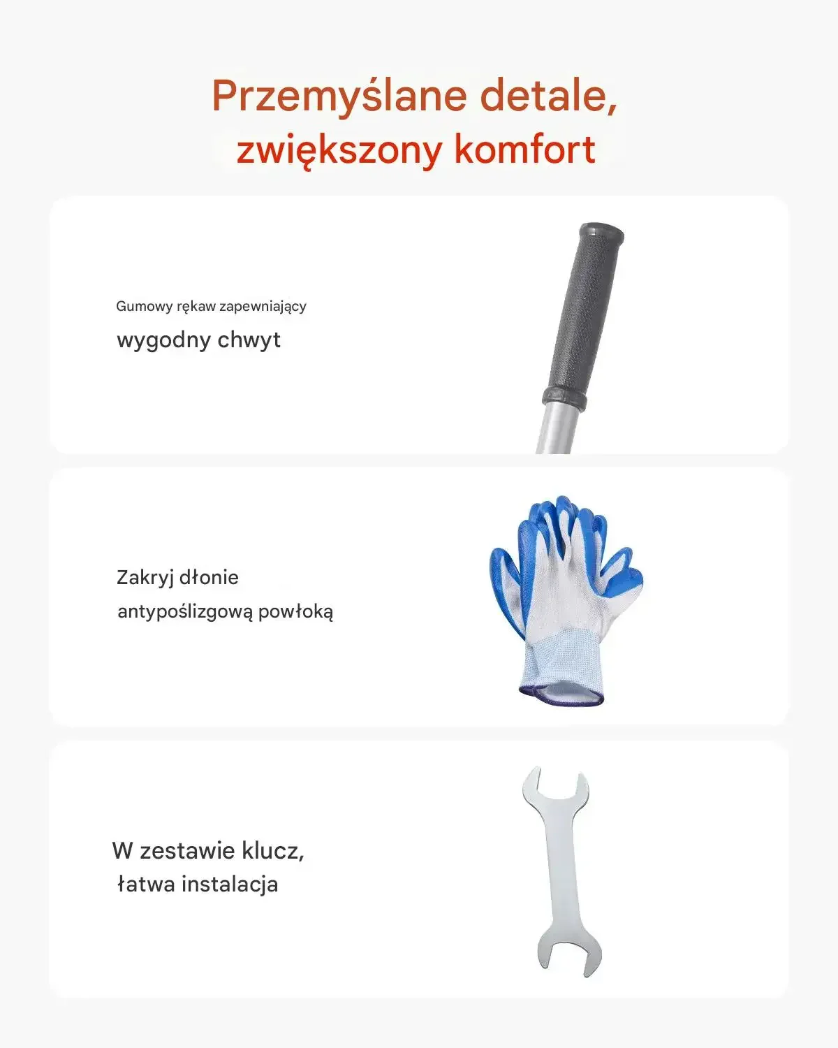- ✅ Antypoślizgowa rękojeść: Gumowa osłona zapewnia pewny i komfortowy chwyt