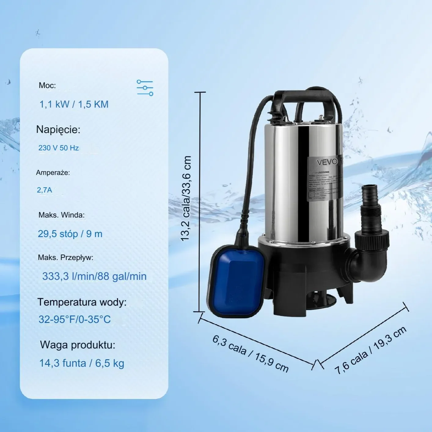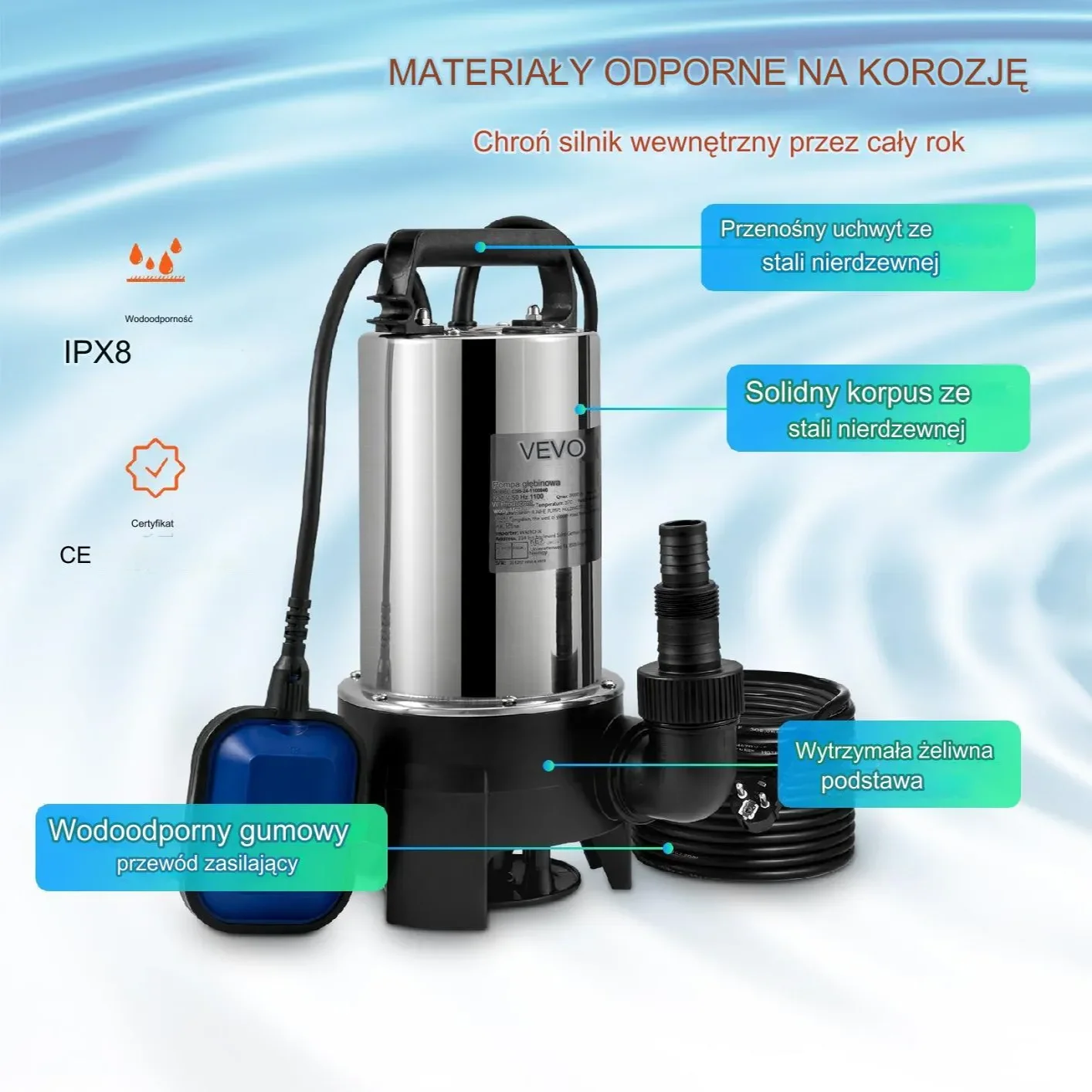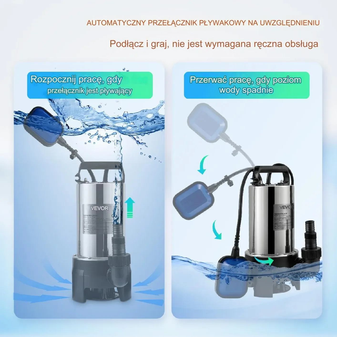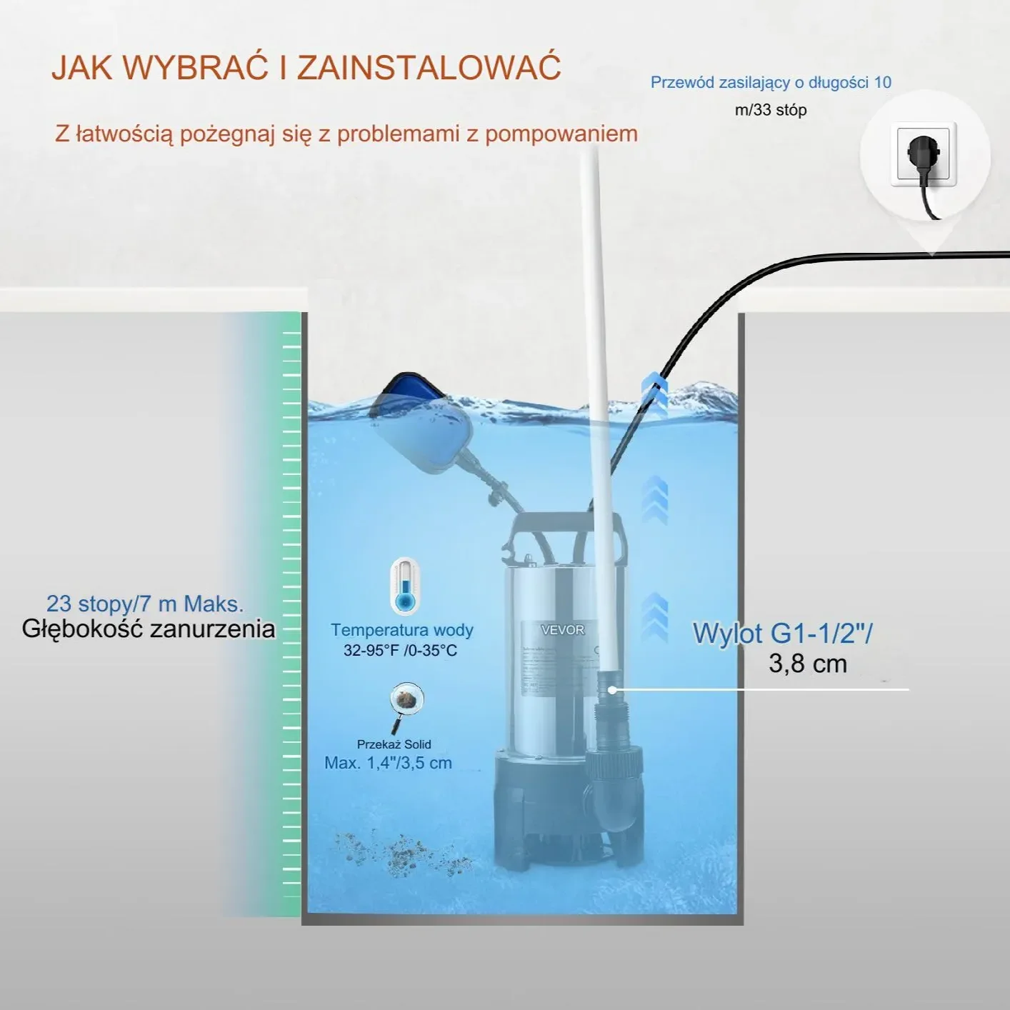- ✅ Wyłącznik pływakowy – Automatyczne włączanie i wyłączanie w zależności od poziomu wody.