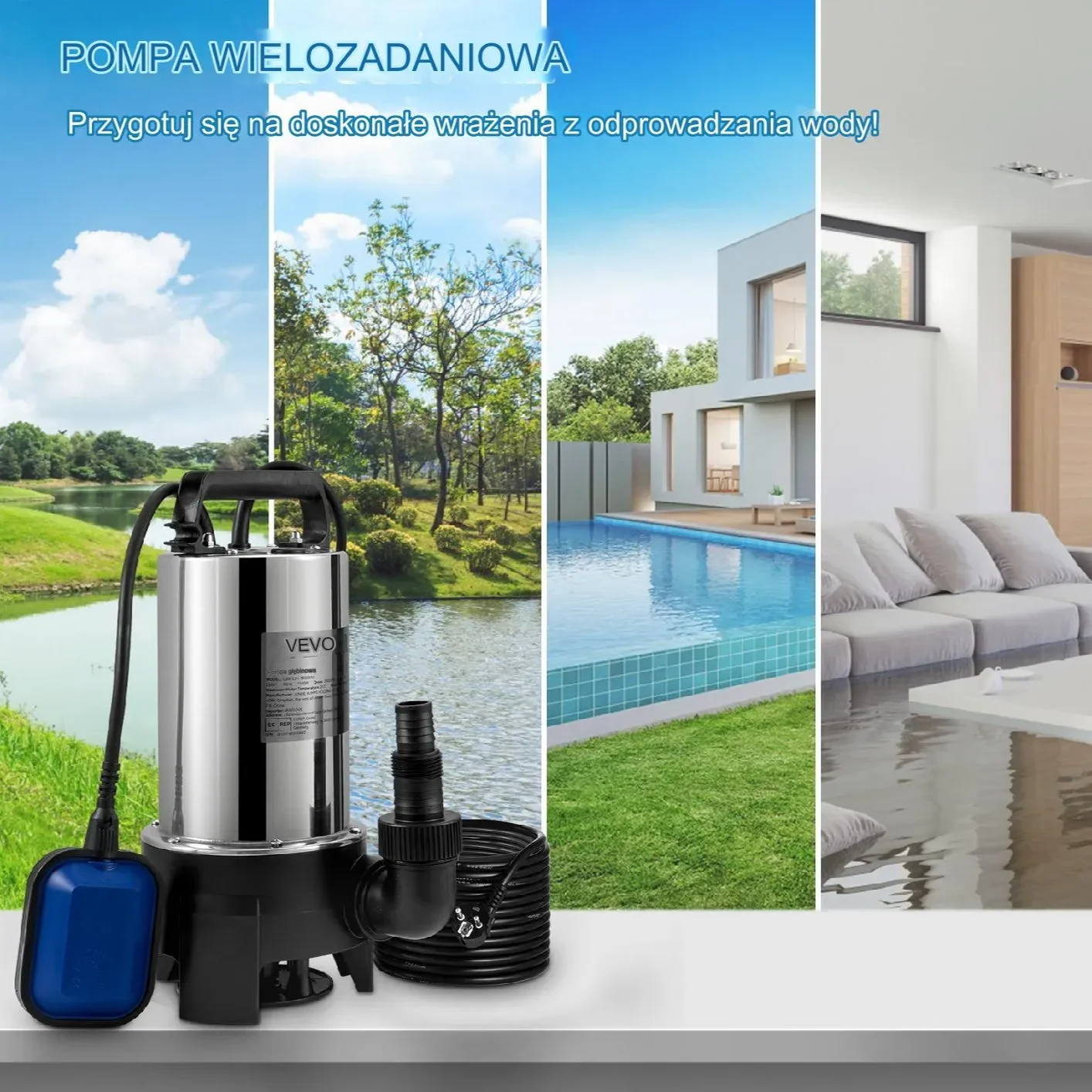 - ⭐ Opróżnianie basenów – Szybko pozbądź się wody z basenów, wanien z hydromasażem czy stawów.
