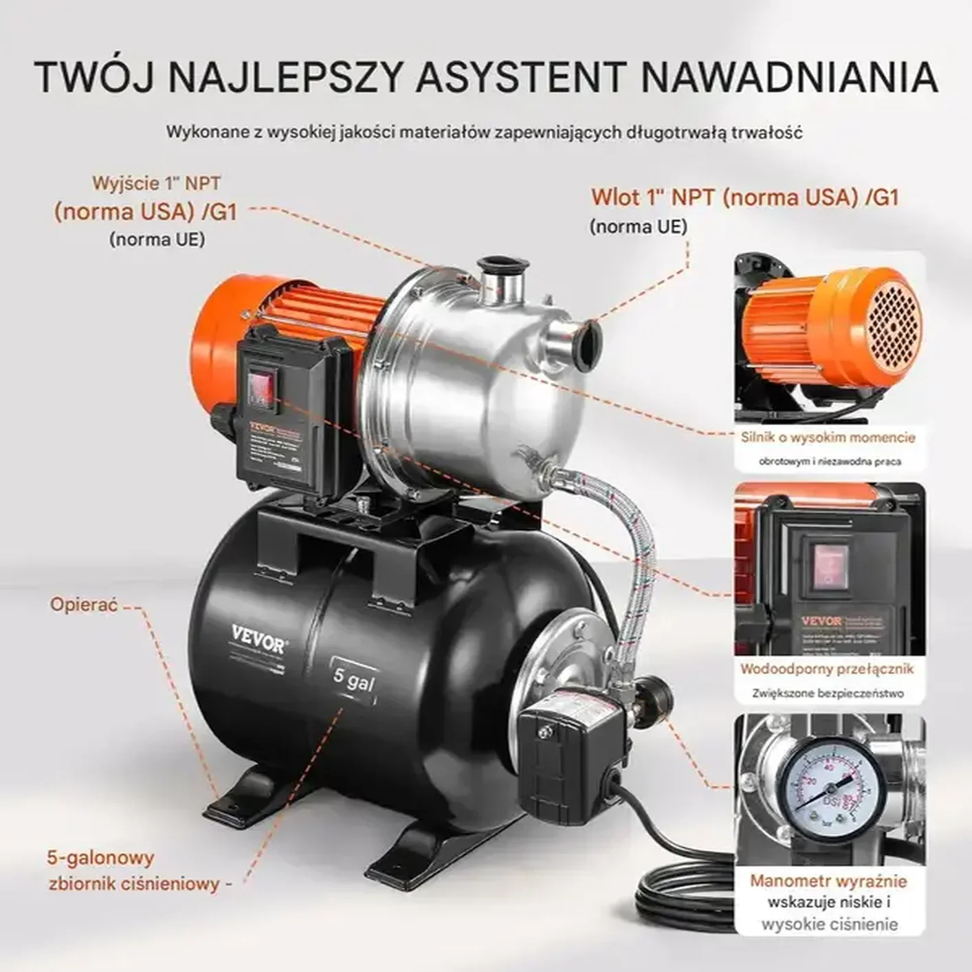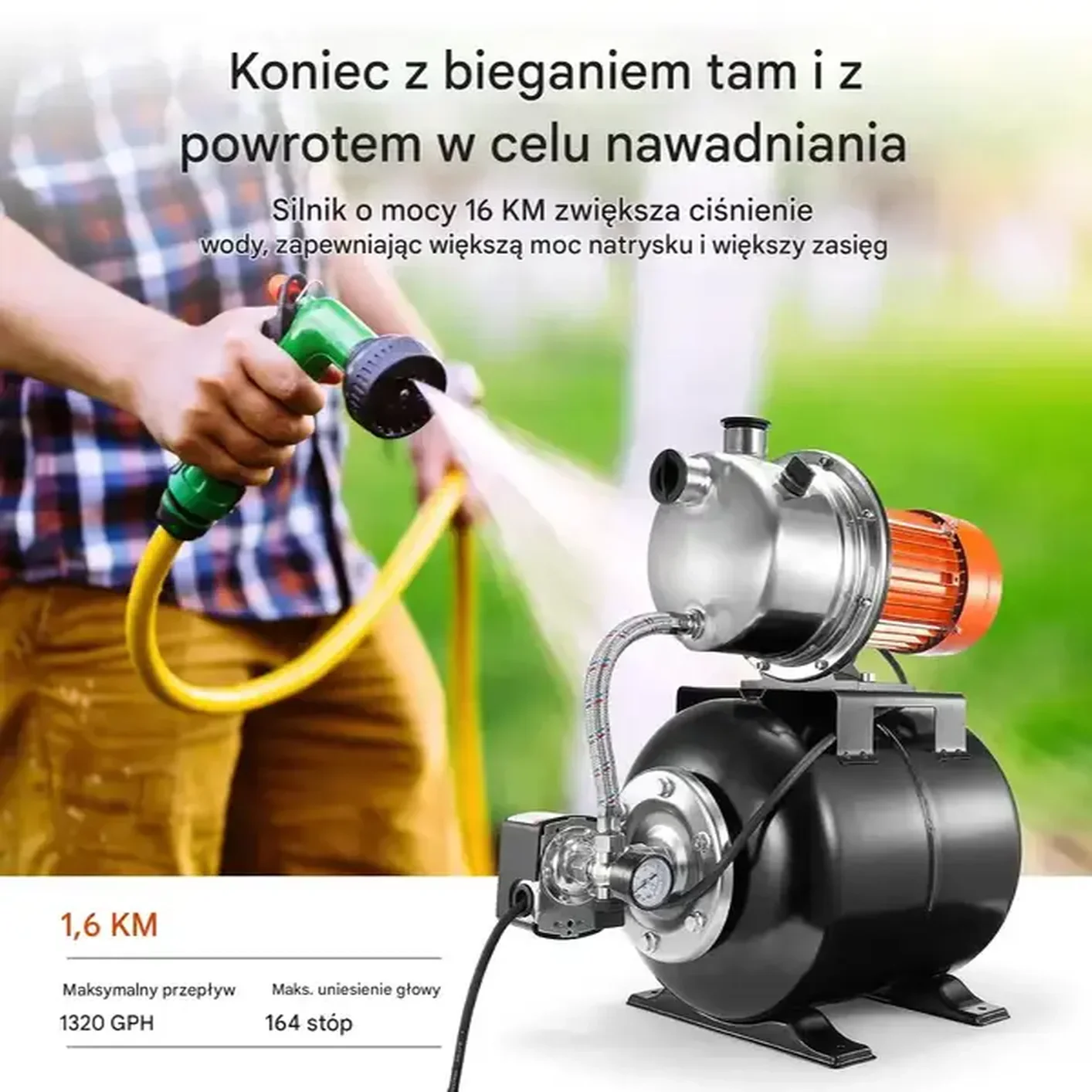 Pompa do Wody z Zbiornikiem Ciśnieniowym 1.6 HP – Wysoka Wydajność i Niezawodność w Każdych Warunkach