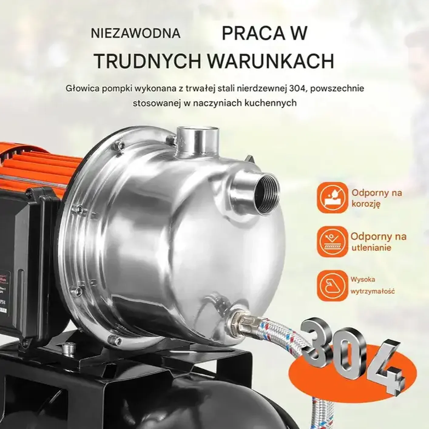- ✅ Trwała konstrukcja: Głowica pompy wykonana z stali nierdzewnej 304 odpornej na korozję i zanieczyszczenia.