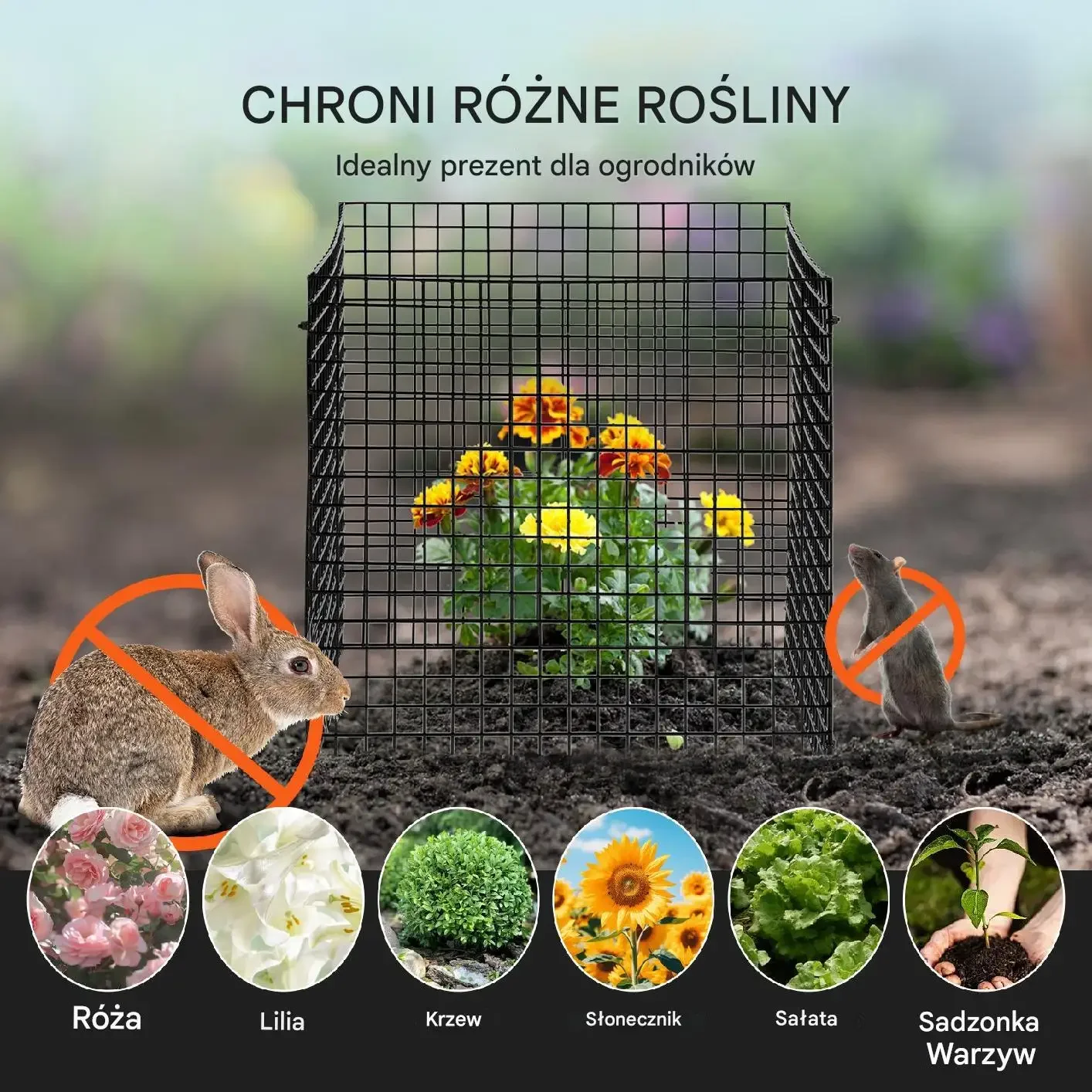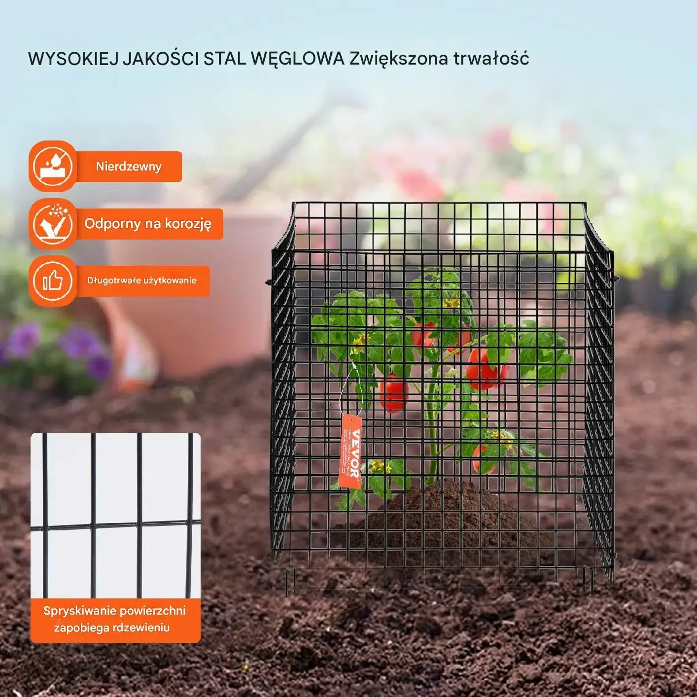 Wykonany z wysokiej jakości stali węglowej z powłoką proszkową, ten ochronnik roślin jest odporny na rdzę i trwały. Jego solidna konstrukcja zapewnia niezawodność i chroni rośliny przed małymi zwierzętami.