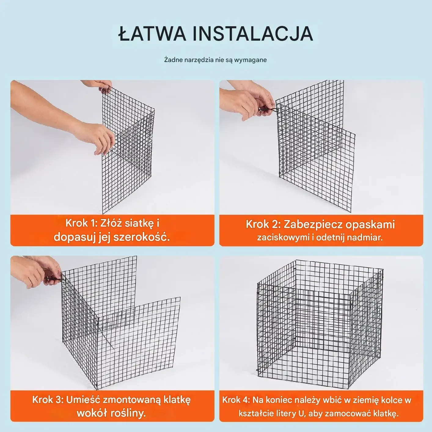Prosta i wygodna instalacja – podłącz pręty nośne za pomocą dołączonych akcesoriów. Gdy nie jest używana, druciana osłona roślin można łatwo zdemontować w celu kompaktowego przechowywania, oszczędzając miejsce w magazynie.