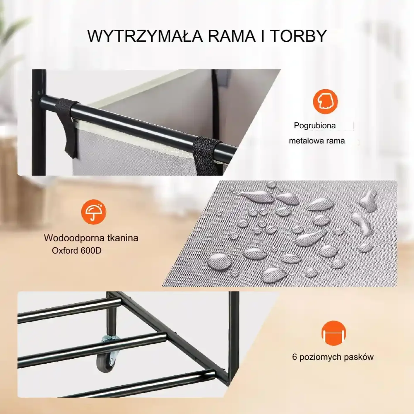 - Ułatwiające pranie wyjątkowy wózek do sortowania prania zachwyca trwałą ramą i solidnymi torbami z tkaniny Oxford 600D.