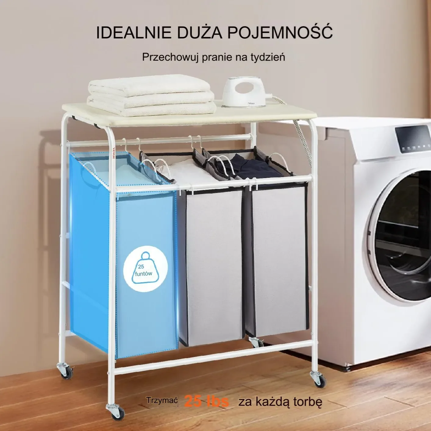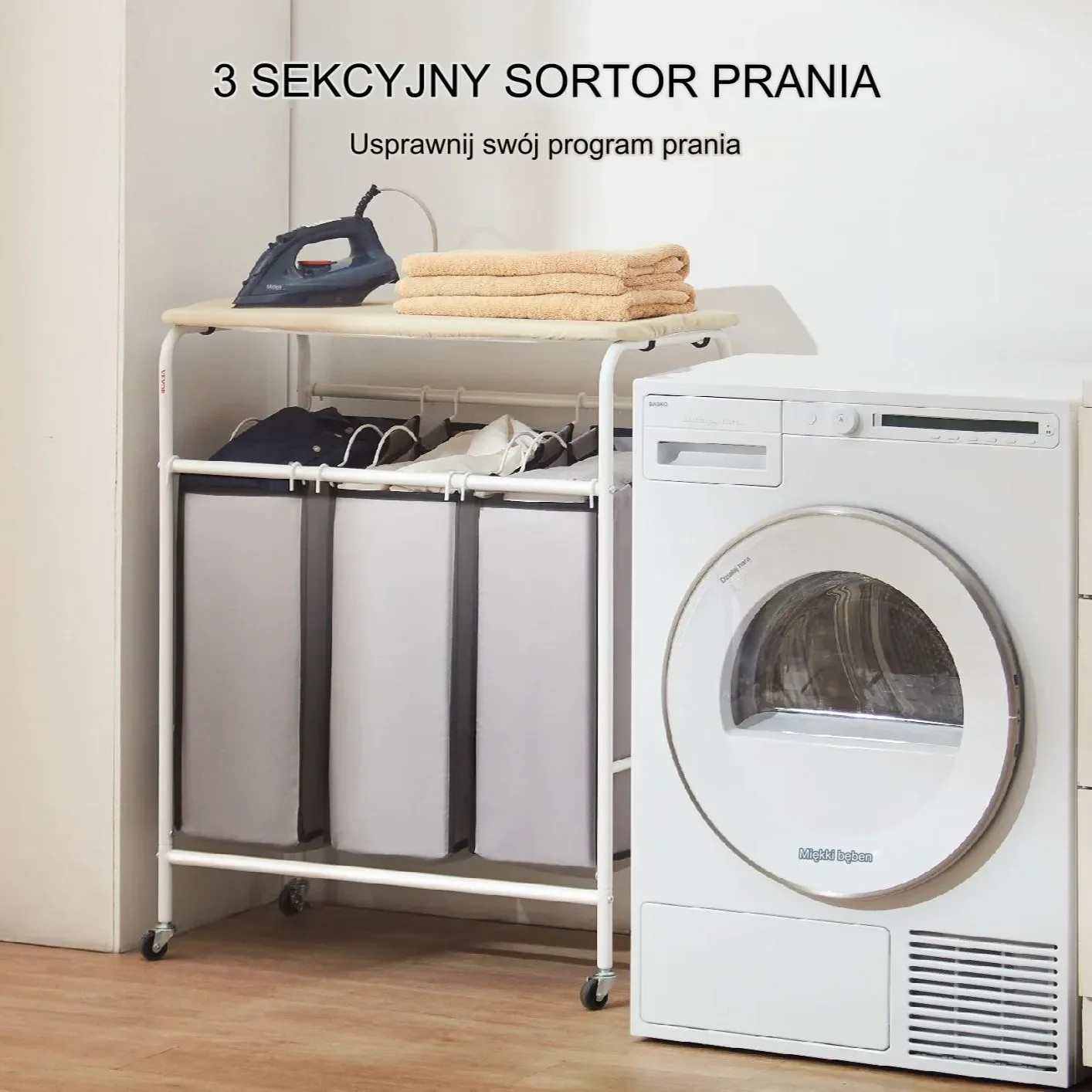 - ➡️ Organizacja: 3 worki – sortowanie prania jeszcze nigdy nie było tak proste.