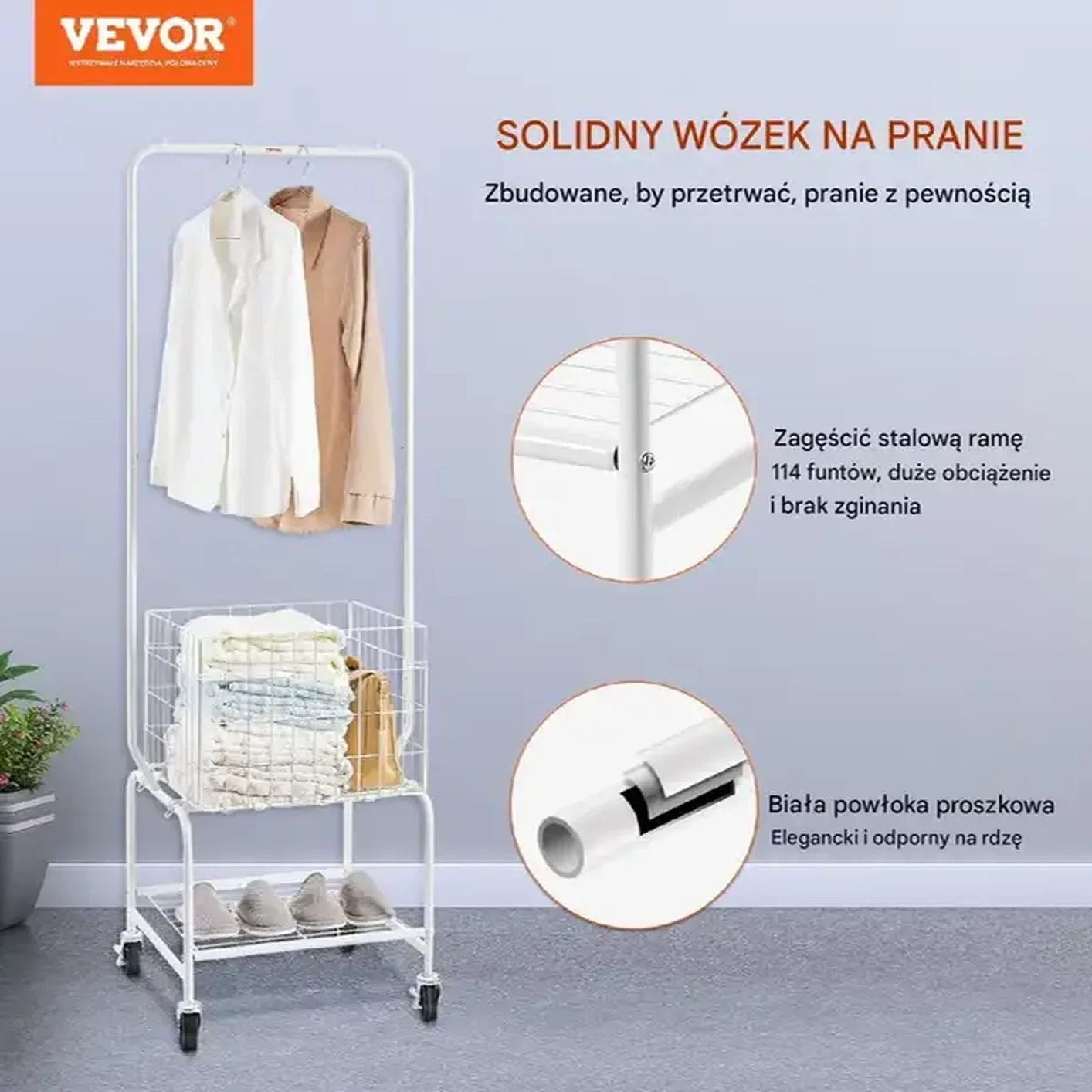 Kosz na pranie z wieszakiem do pralni na kółkach
