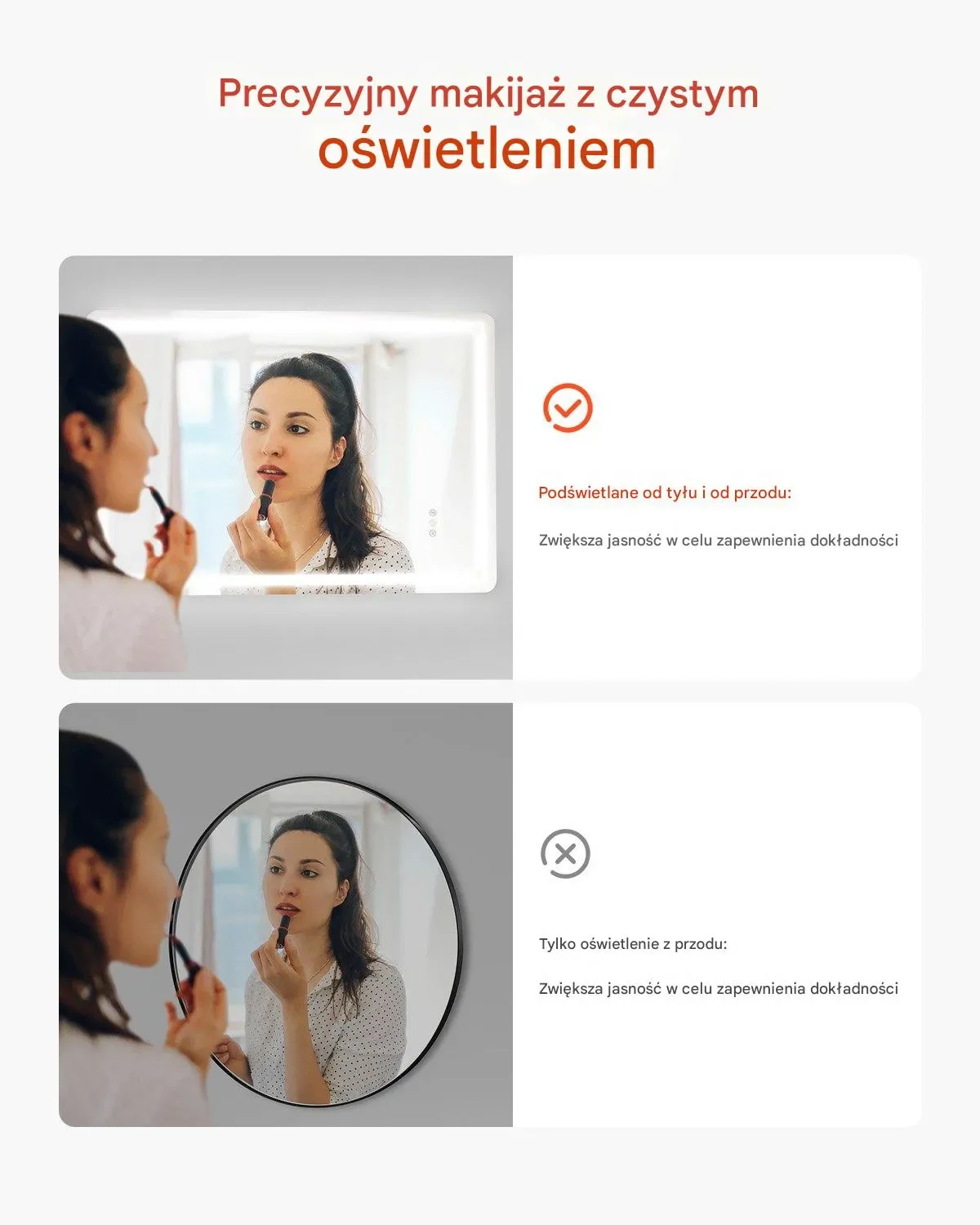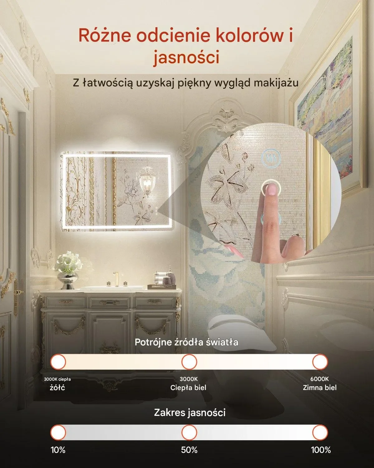 - ⭐ Łazienka – idealne do codziennej pielęgnacji i makijażu dzięki funkcji anti-fog i regulowanemu oświetleniu