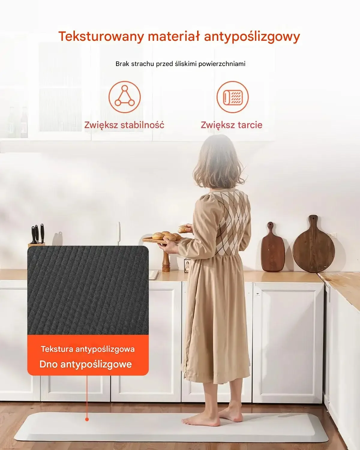 - ✅ Podwójna antypoślizgowa konstrukcja: Teksturowana powierzchnia PVC + antypoślizgowy spód zwiększają stabilność na śliskich podłogach
