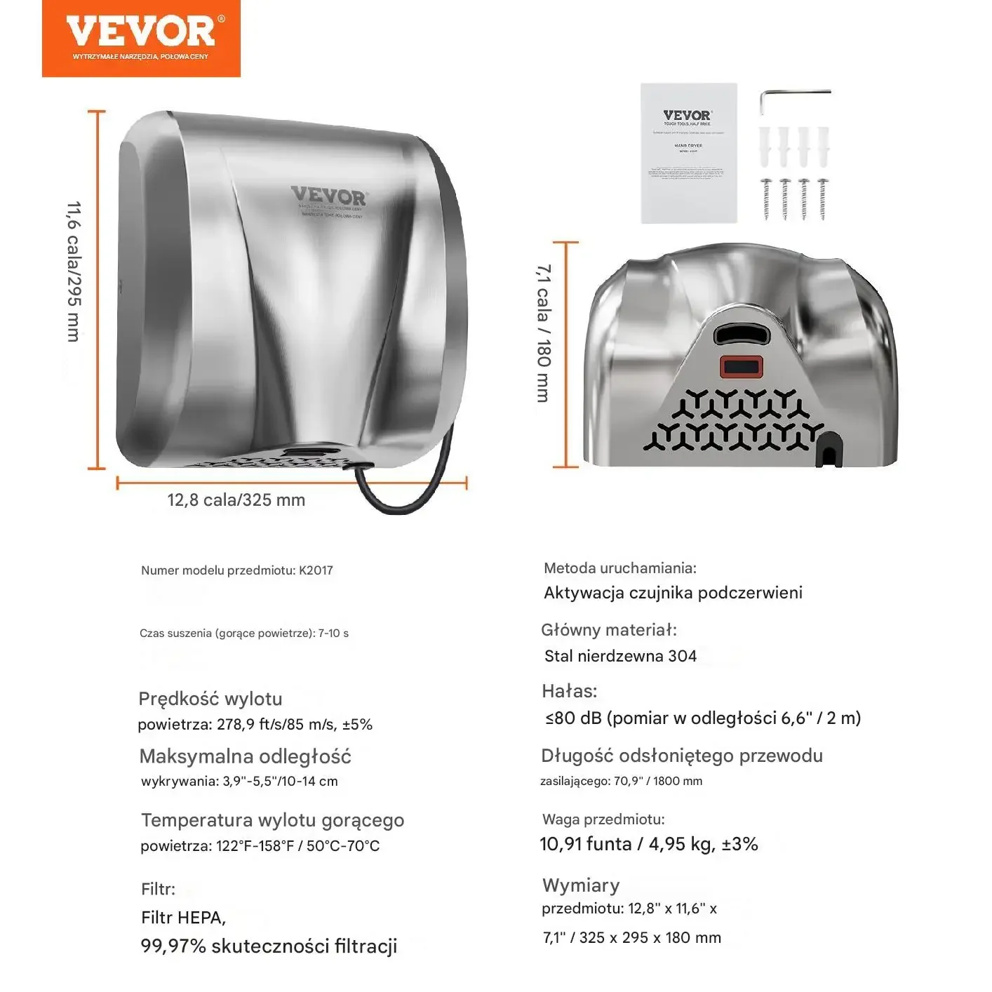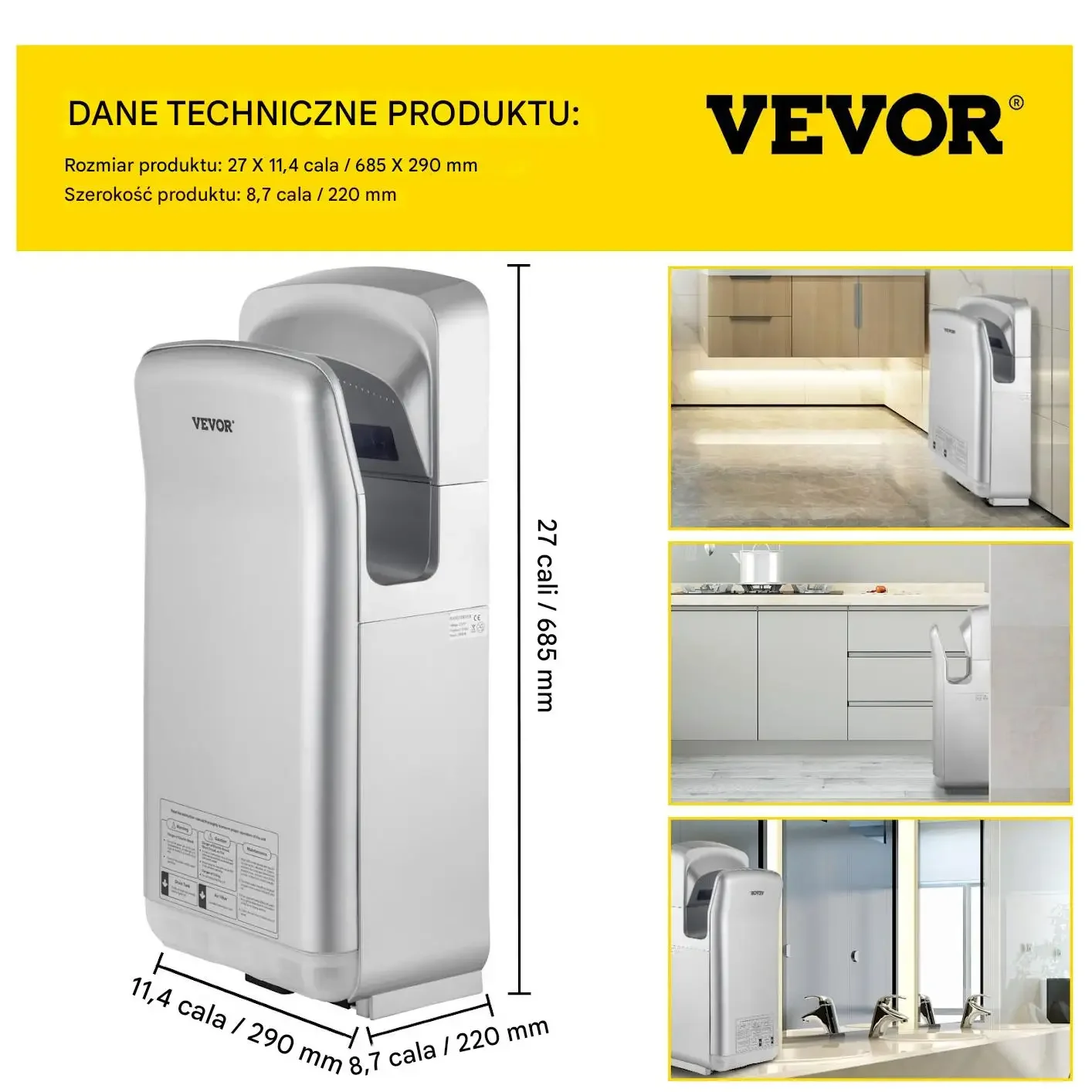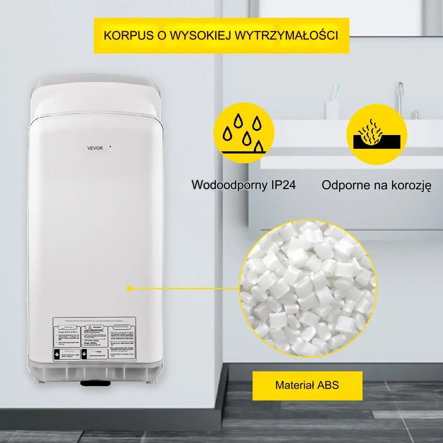 Nowoczesna elektryczna suszarka do rąk o mocy 2000W, wyposażona w system szybkiego suszenia i filtrację HEPA. Dzięki silnikowi o prędkości 23000 obr./min, suszenie rąk trwa zaledwie 8-10 sekund. Bezdotykowa obsługa, solidna obudowa z ABS oraz możliwość ustawienia temperatury powietrza sprawiają, że jest to idealne rozwiązanie dla miejsc publicznych i komercyjnych.