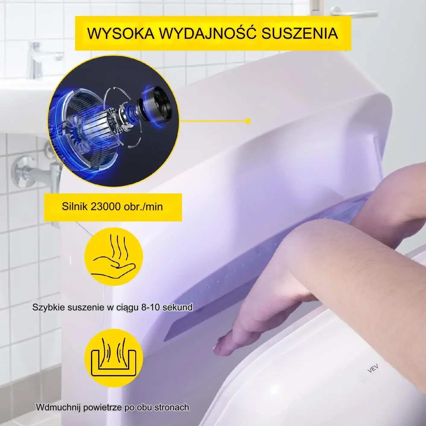 - Ekspresowe suszenie rąk – zaledwie 8-10 sekund