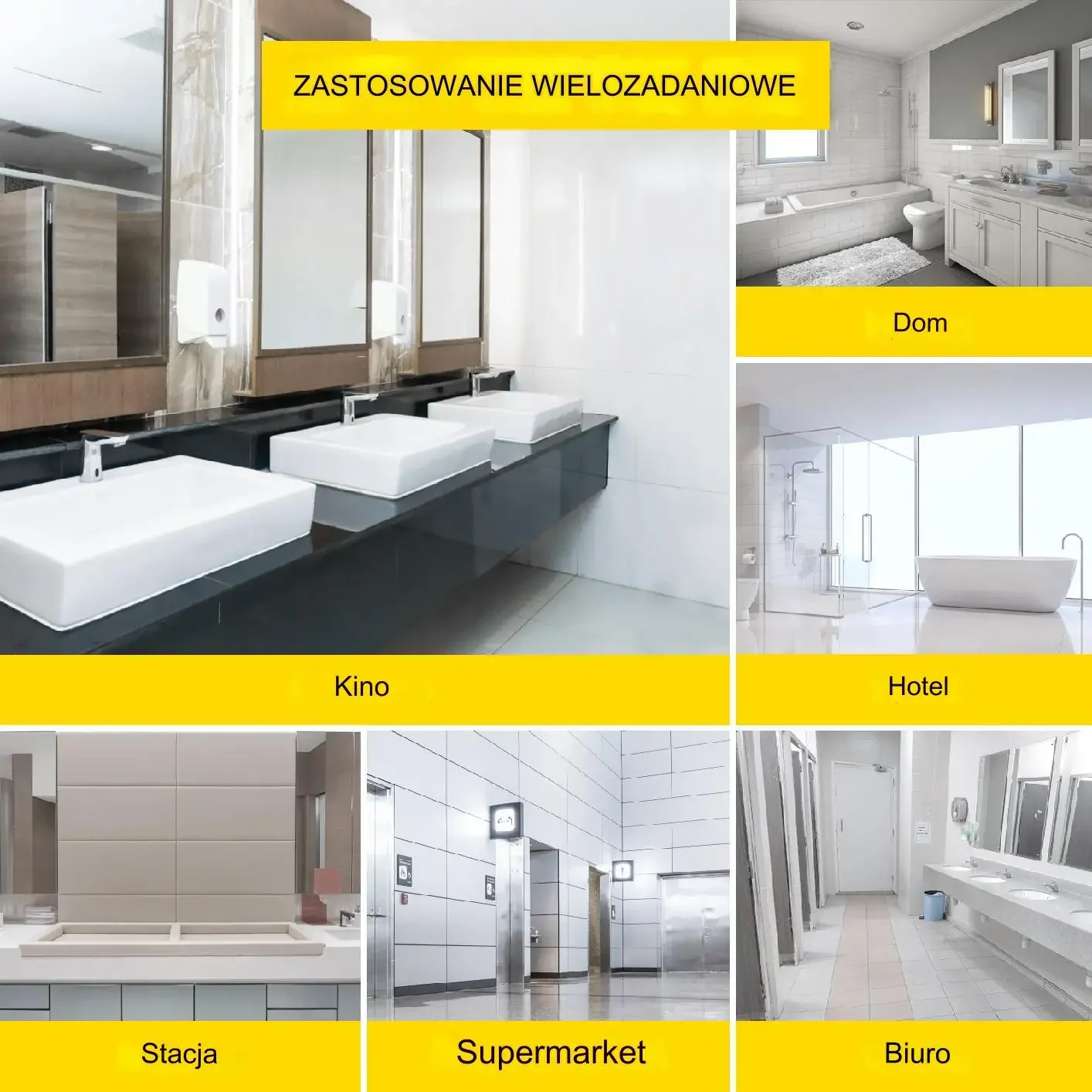 Idealna do użytku w biurach, hotelach, centrach handlowych, szkołach i toaletach publicznych.