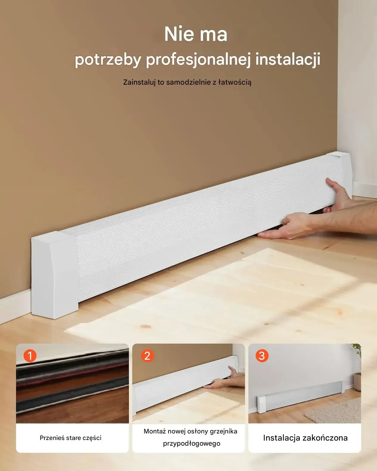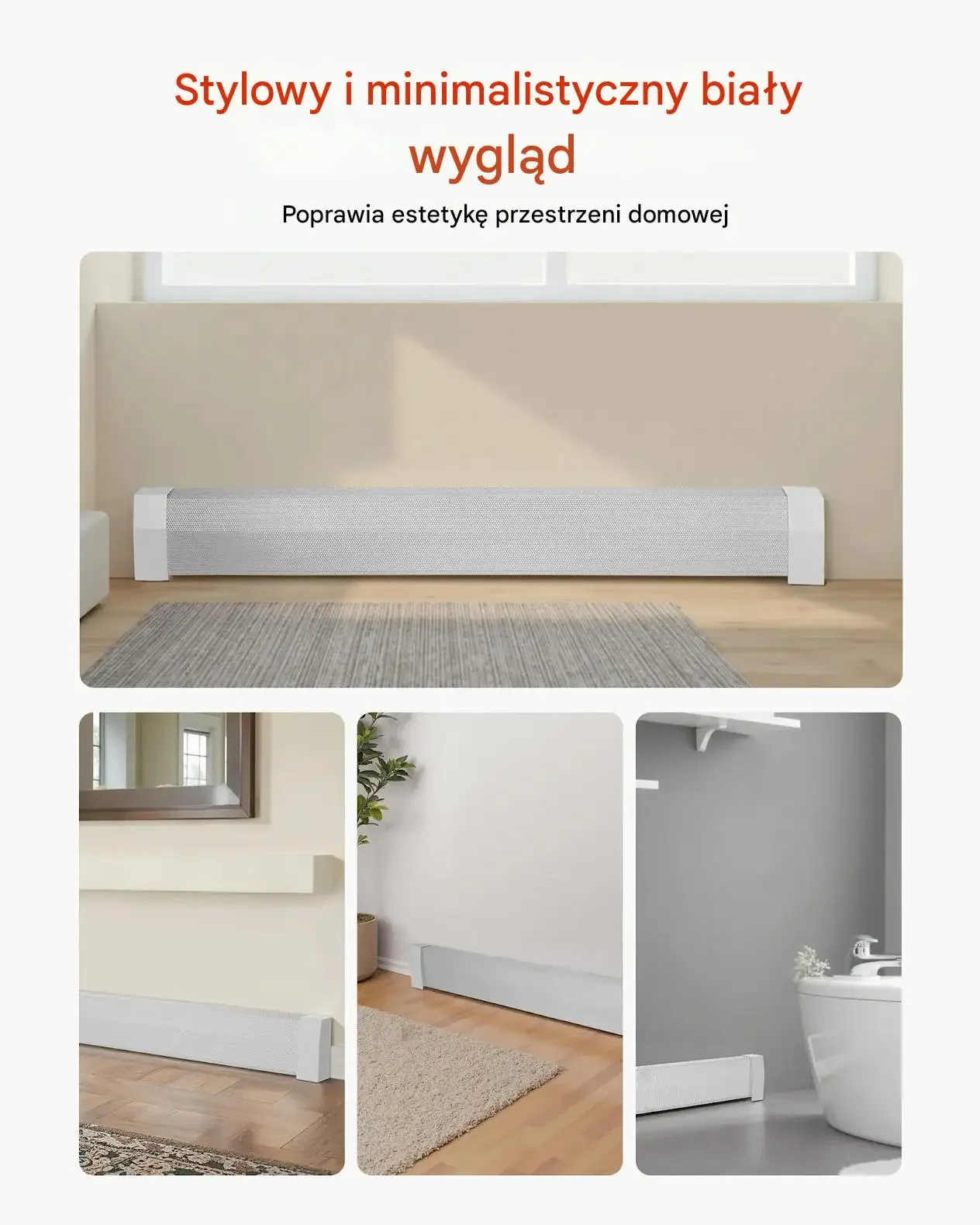 - ⭐ Korytarze i ciągi komunikacyjne: pomaga uporządkować wygląd długich ścian, gdzie grzejniki są szczególnie widoczne, oraz ogranicza zabrudzenia i ślady użytkowania