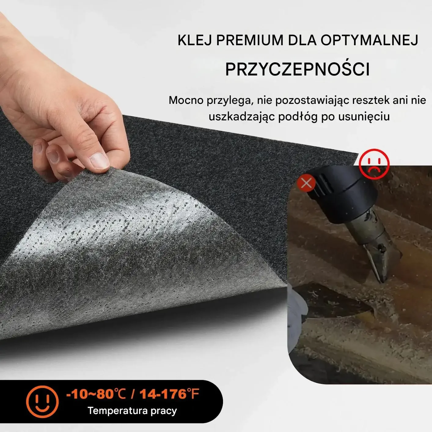 Klej stosowany w dywanach zapewnia mocne przyleganie, nie pozostawiając resztek ani nie uszkadzając podłoża przy usuwaniu. Może być używany w szerokim zakresie temperatur od -10 do 80°C.