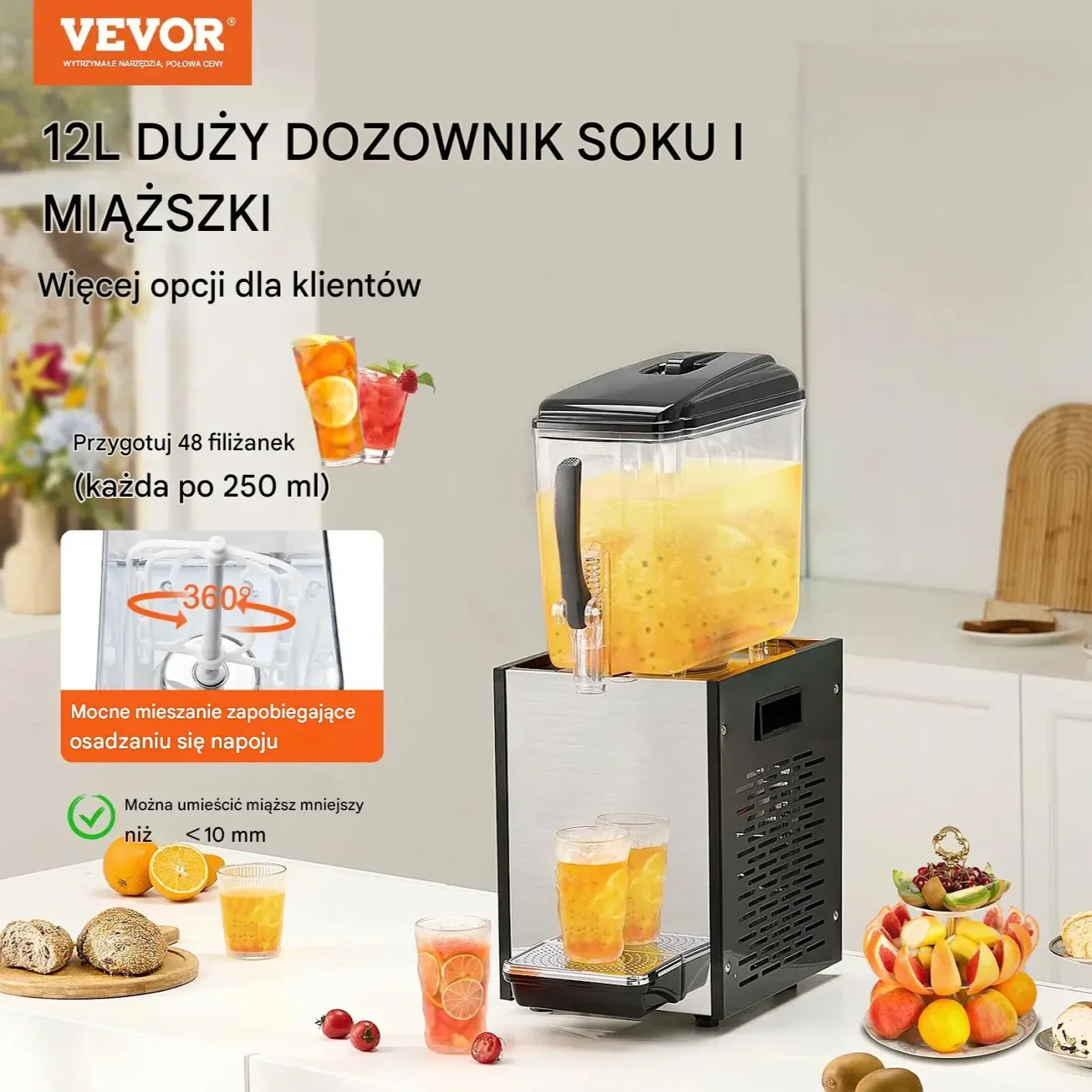 - ✅ Duża pojemność: Zbiornik o pojemności 12 litrów idealny do serwowania dużych ilości napojów