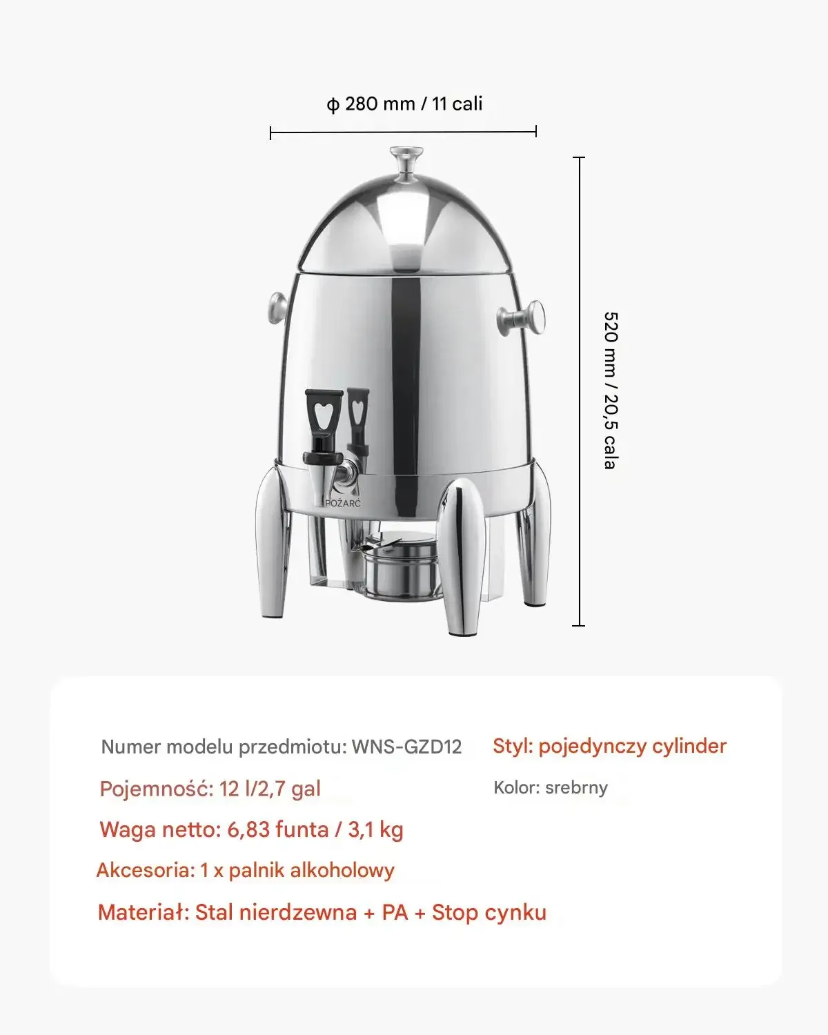 Wymiary produktu: 6,89 x 4,53 x 17,13 cala (175 x 115 x 435 mm). Masa netto: 9,92 funta / 4,5 kg. Konstrukcja podstawkowa z regulatora gazu W21.8 wykonana ze stali nierdzewnej SUS 304. Pojemnik na piwo z odpornym na korozję wnętrzem i powierzchnią chromowaną. Zestaw oferuje solidny i trwały korpus ze stali nierdzewnej 304.