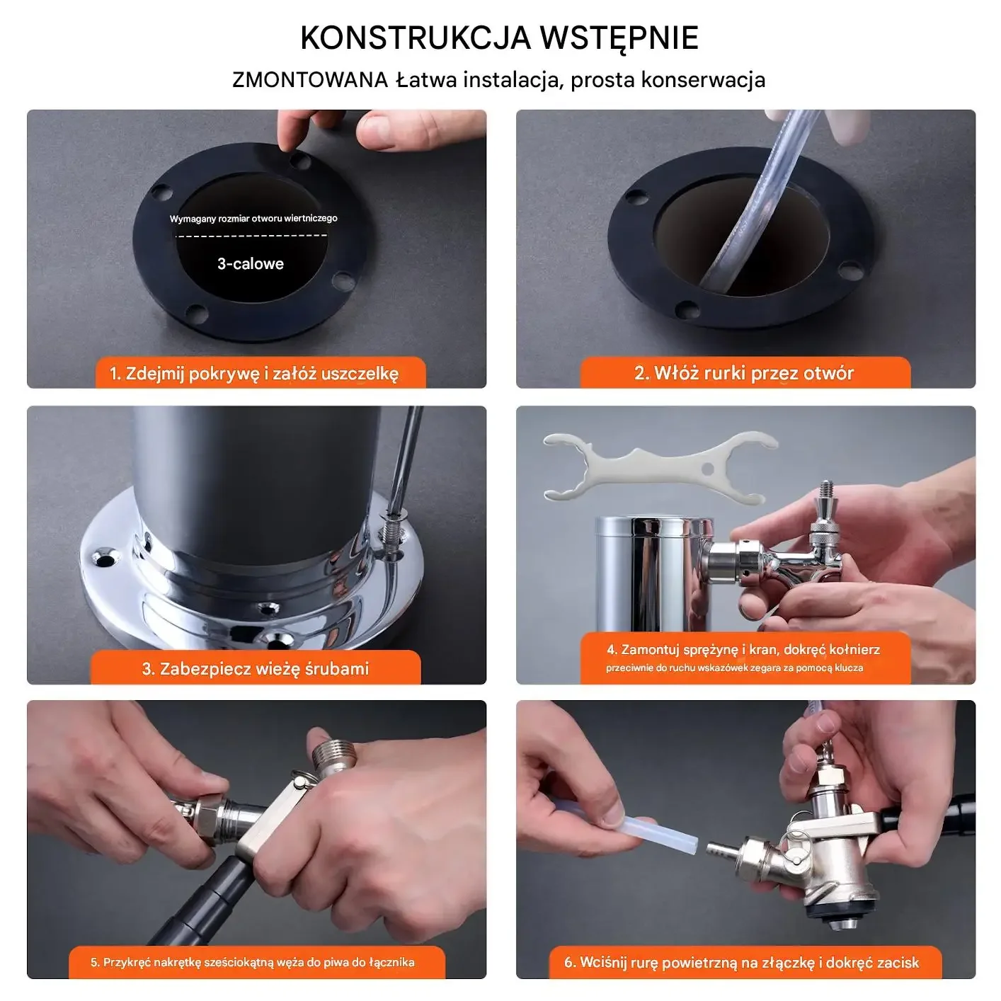 Wyposażona we wstępnie zamontowane przewody oraz solidny system mocowania, umożliwia szybki i bezproblemowy montaż, bez potrzeby użycia specjalistycznych narzędzi. Ergonomiczny uchwyt zapewnia precyzyjne i wygodne nalewanie piwa, a nowoczesny, profesjonalny design efektownie podkreśla charakter każdego wnętrza.