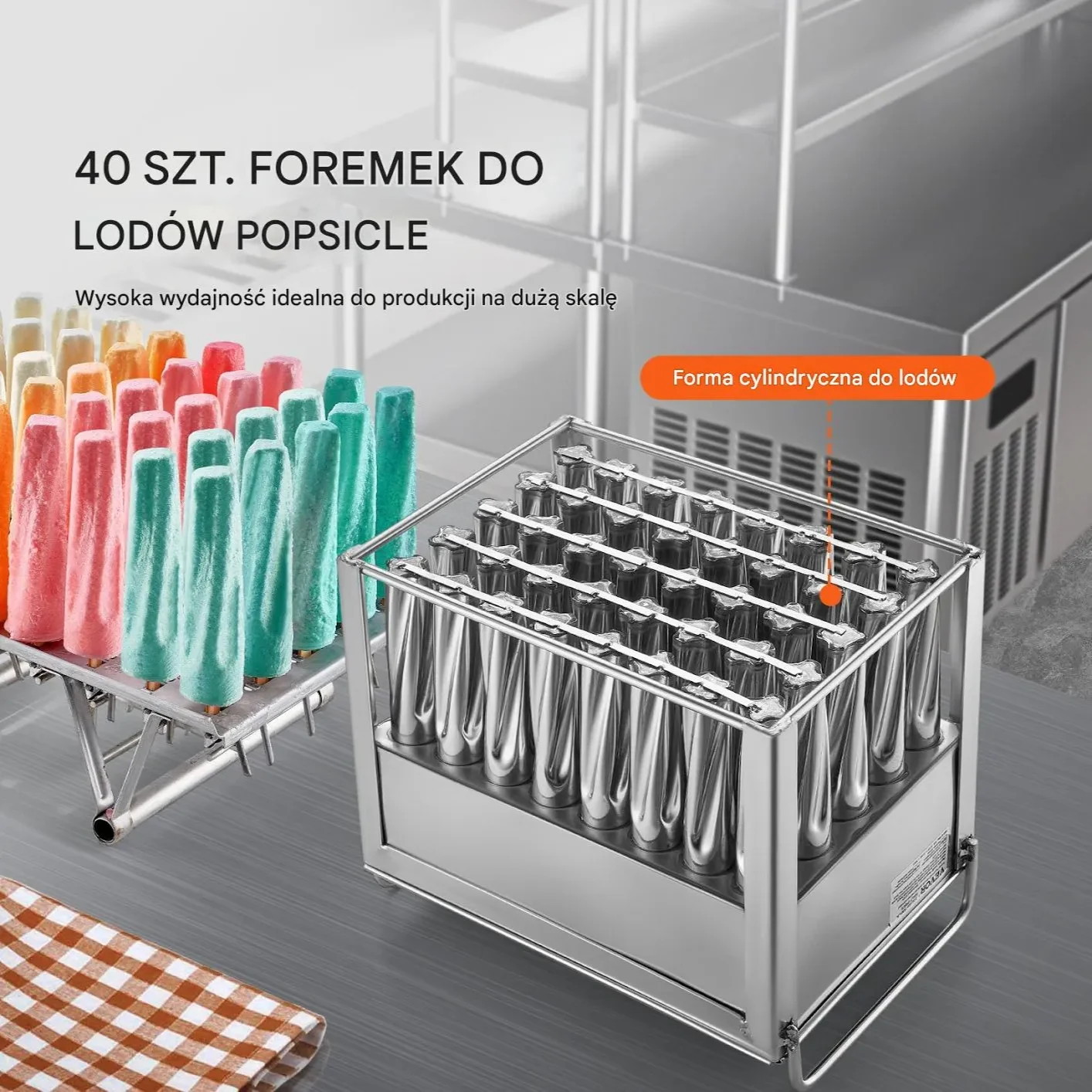 Profesjonalne foremki do lodów na patyku – 40 form cylindrycznych ze stali nierdzewnej