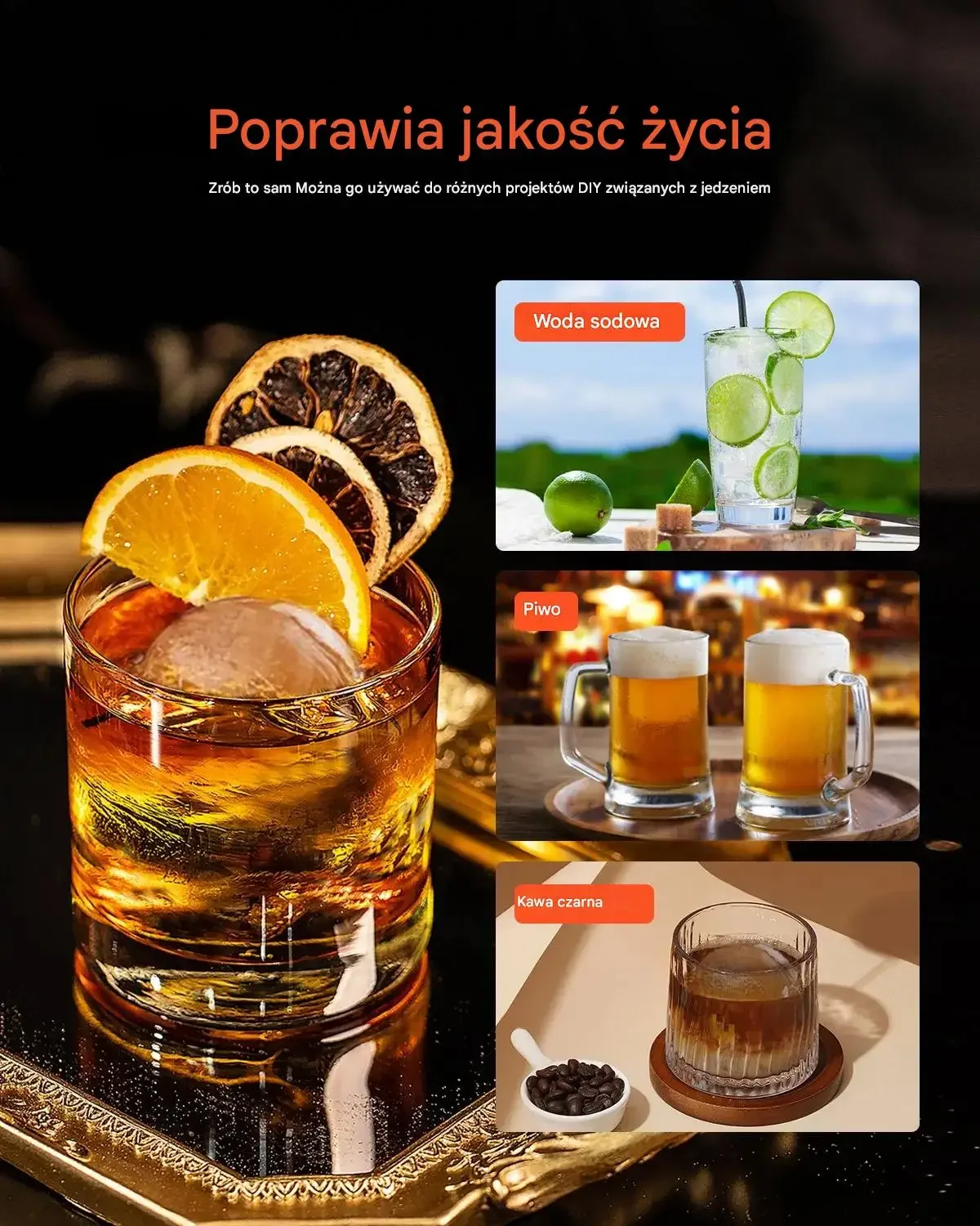 - Efekt WOW w drinkach: Duże, gładkie kule lodu zachwycają wizualnie i smakowo.