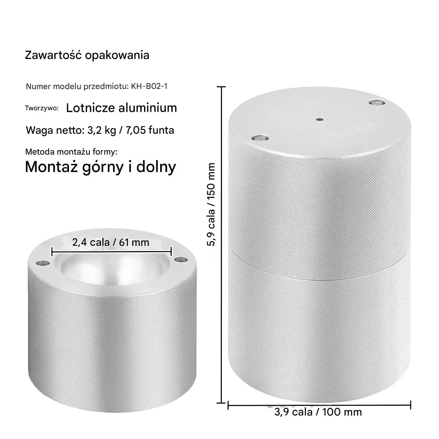 - Materiał: Aluminium lotnicze