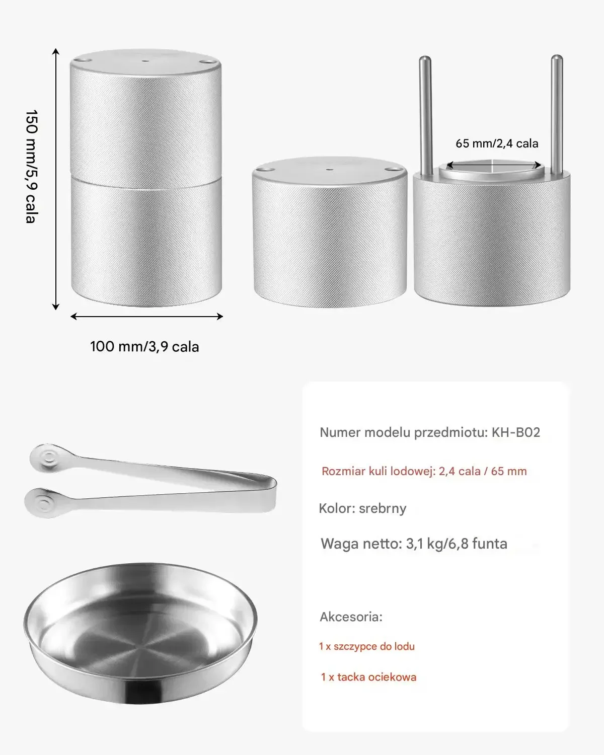 - Akcesoria w zestawie: Szczypce do lodu, taca ociekowa