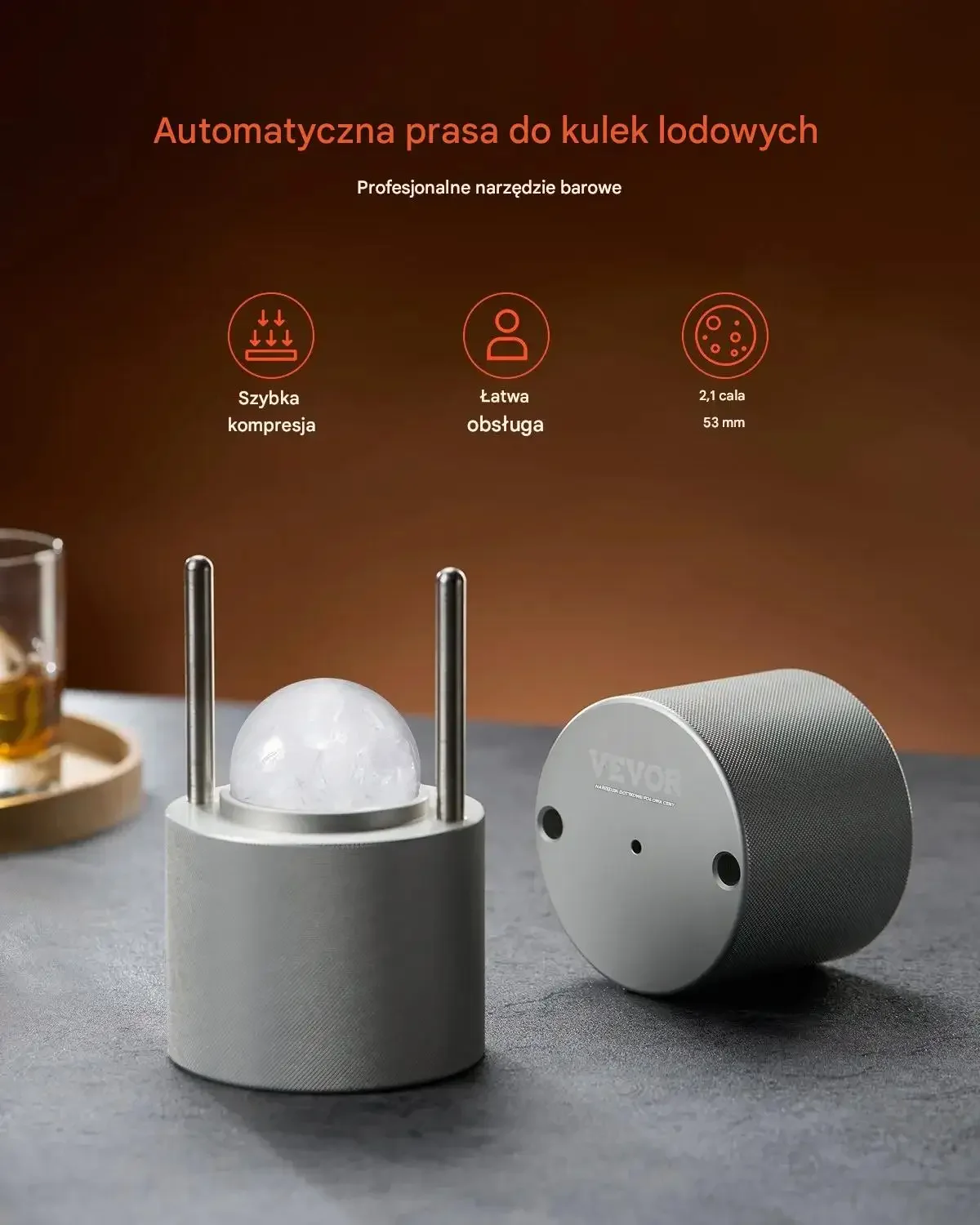 Zamów już dziś i podnieś standard serwowanych napojów dzięki profesjonalnej prasce do kul lodu 53 mm!