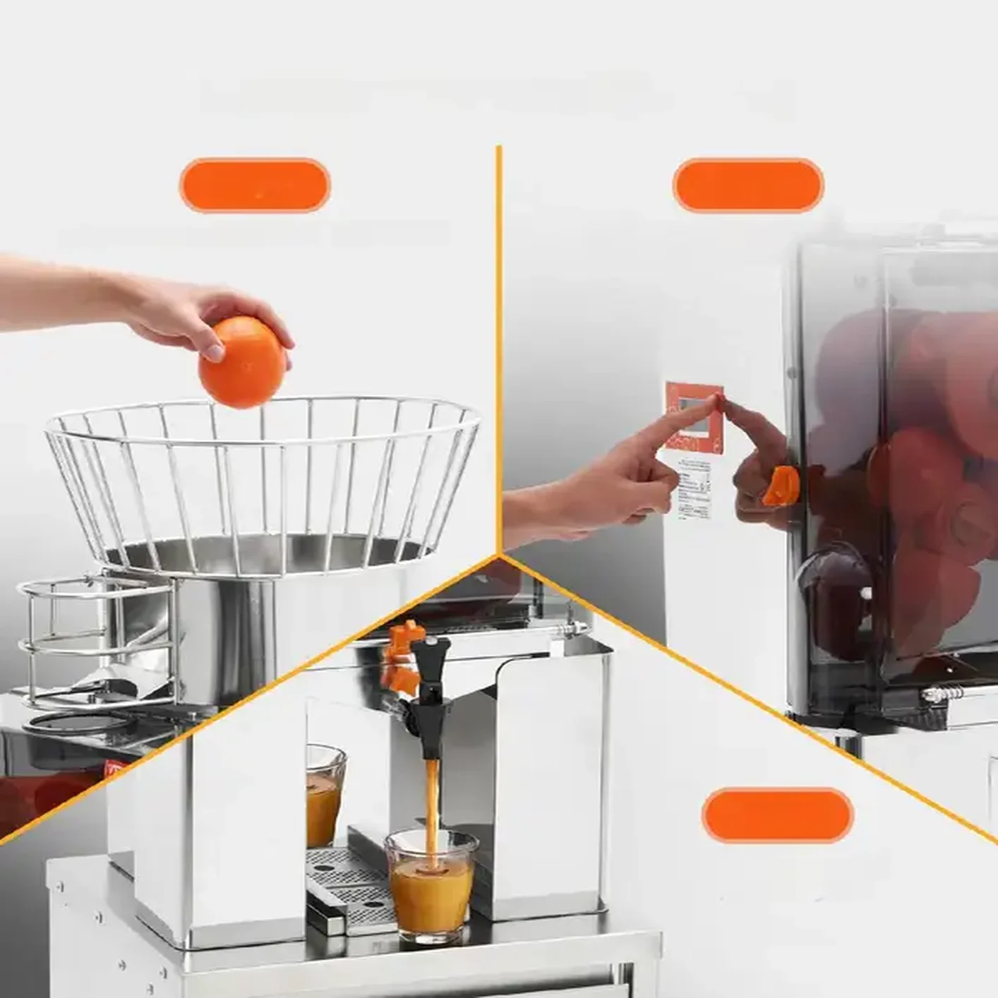 - ✅Wysoka wydajność: Wyciska do 25 pomarańczy na minutę, zapewniając szybką obsługę klientów i stały dostęp do świeżego soku.