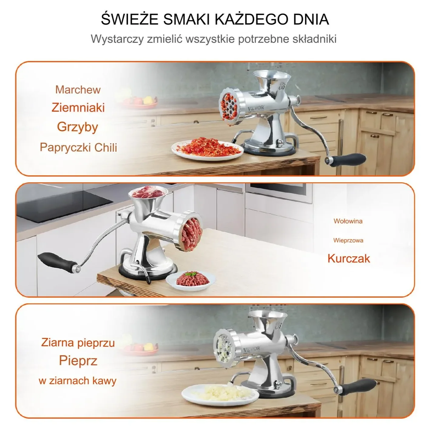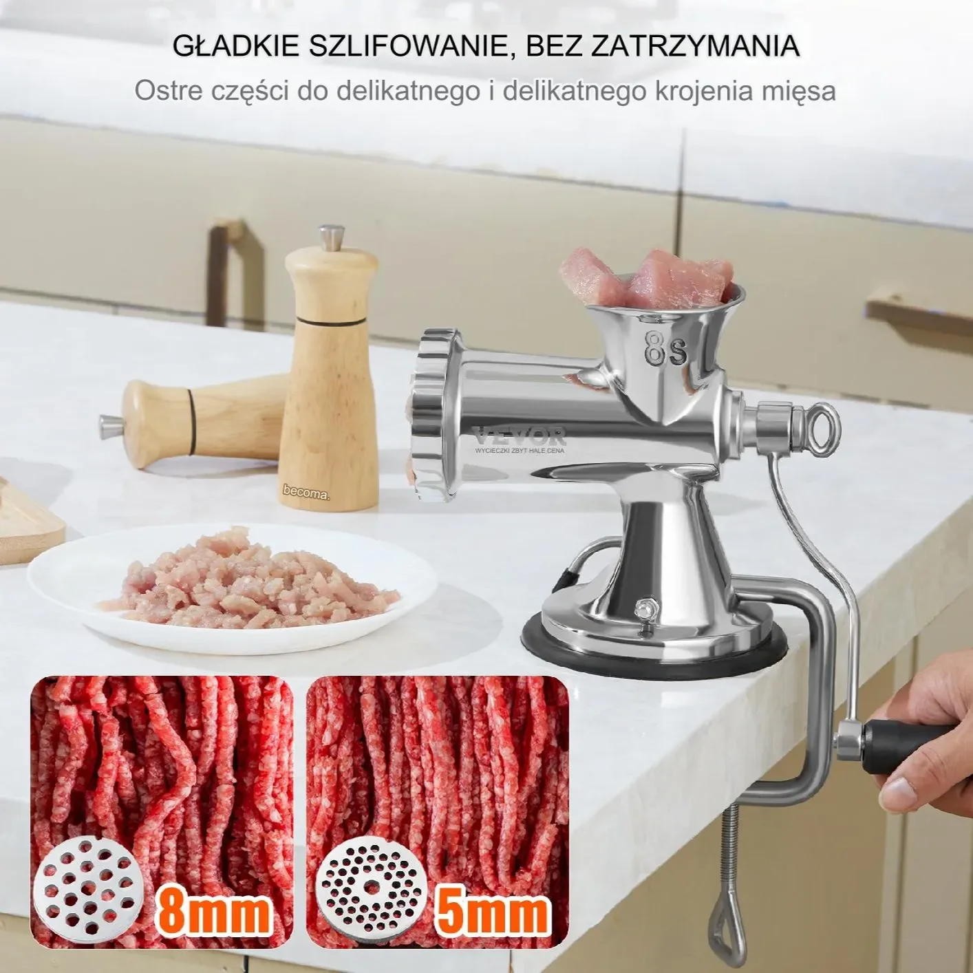 ➡️ Wszechstronne zastosowanie – idealna do mielenia mięsa, ryb, warzyw i przygotowywania farszów.