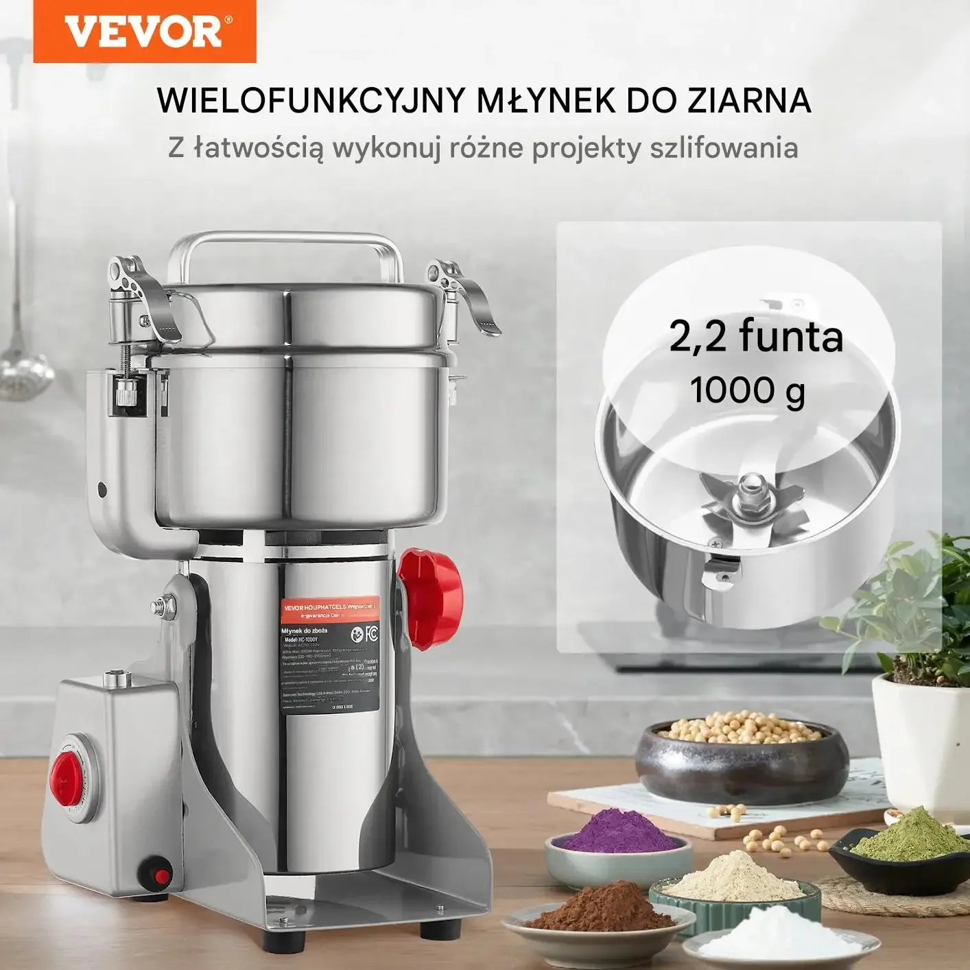 Młynek Udderowy 1000g – Profesjonalny Młynek do Ziół, Ziaren i Przypraw