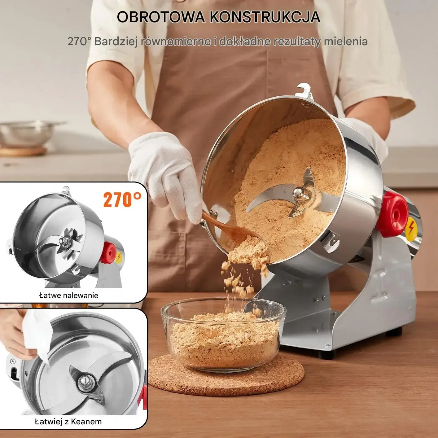 - ⭐ W profesjonalnej kuchni: Szybkie przygotowanie dużych ilości mąki z ziaren, przypraw i suszonych ziół.