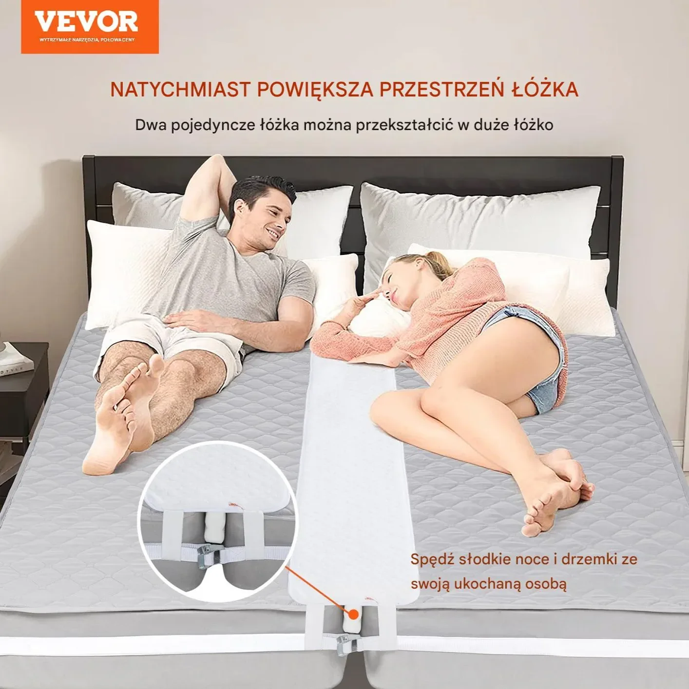 ✔ Komfortowy sen – eliminuje szczelinę między materacami, zapewniając wygodę i stabilność.