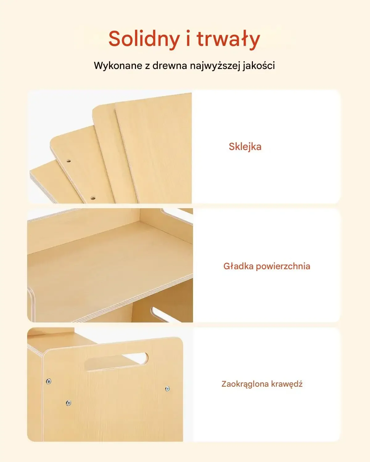 ✔ Jasny kolor drewna – naturalna estetyka pasuje do każdego wnętrza.