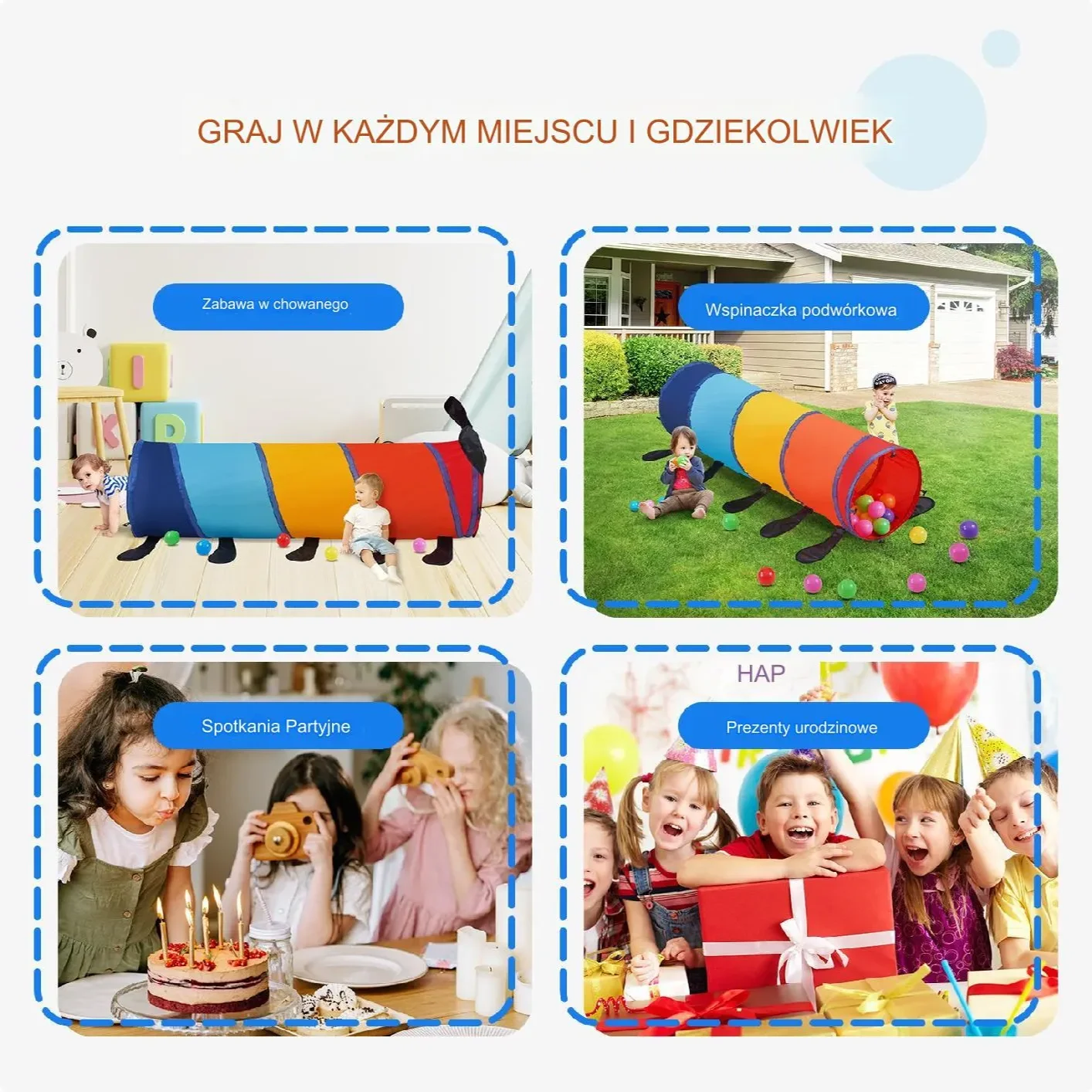 Tunel dla Dzieci Ogrodowy do Domu Gąsienica do Zabawy Duży Składany