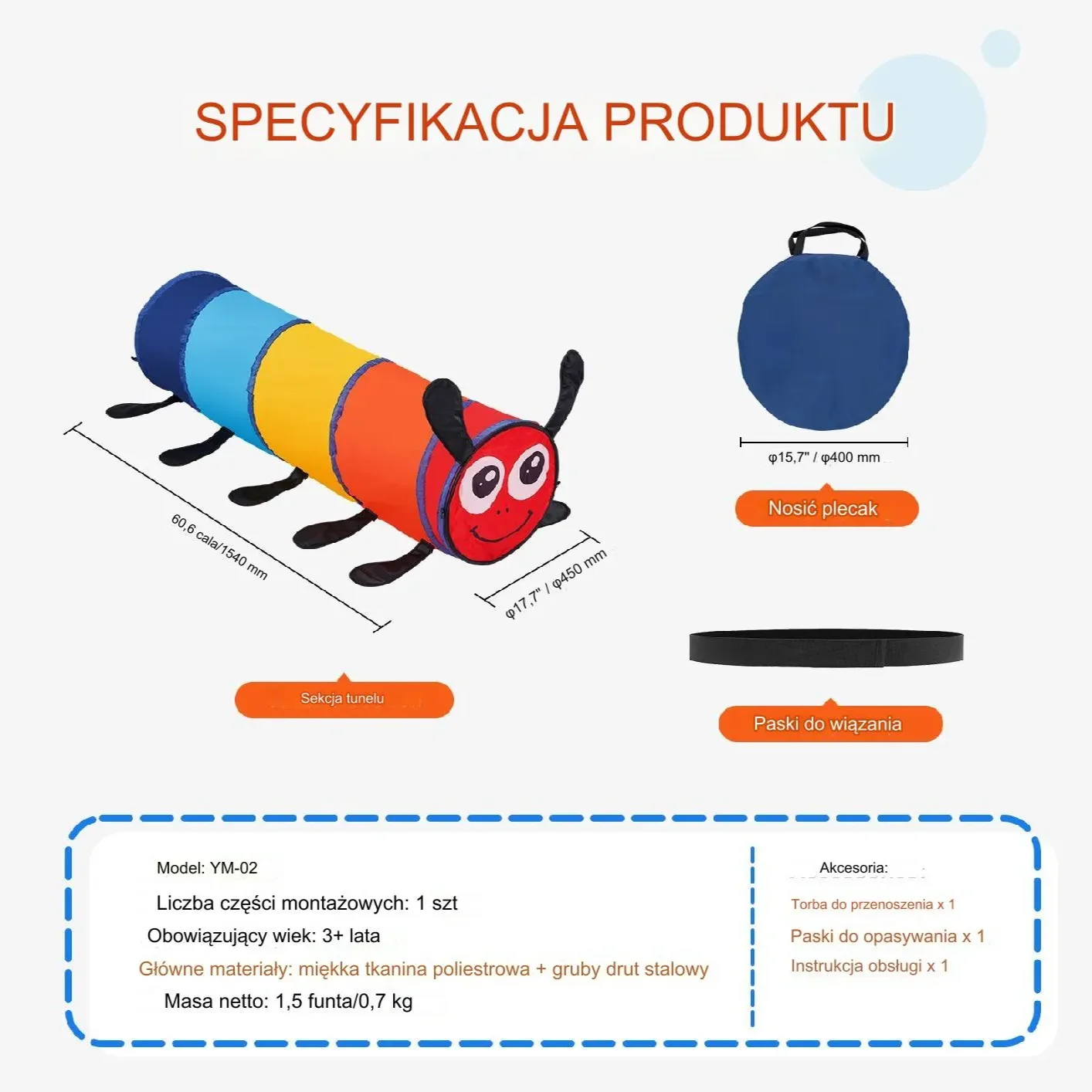 Tunel dla dzieci Gąsienica — duży, składany do ogrodu i domu