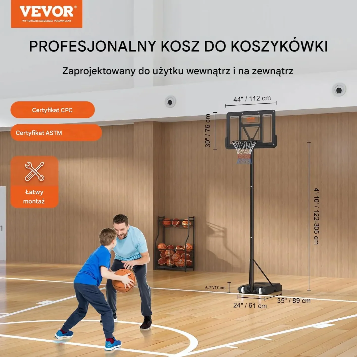 Kosz do Koszykówki dla Dzieci z Regulacją Wysokości – 1040-1900 mm