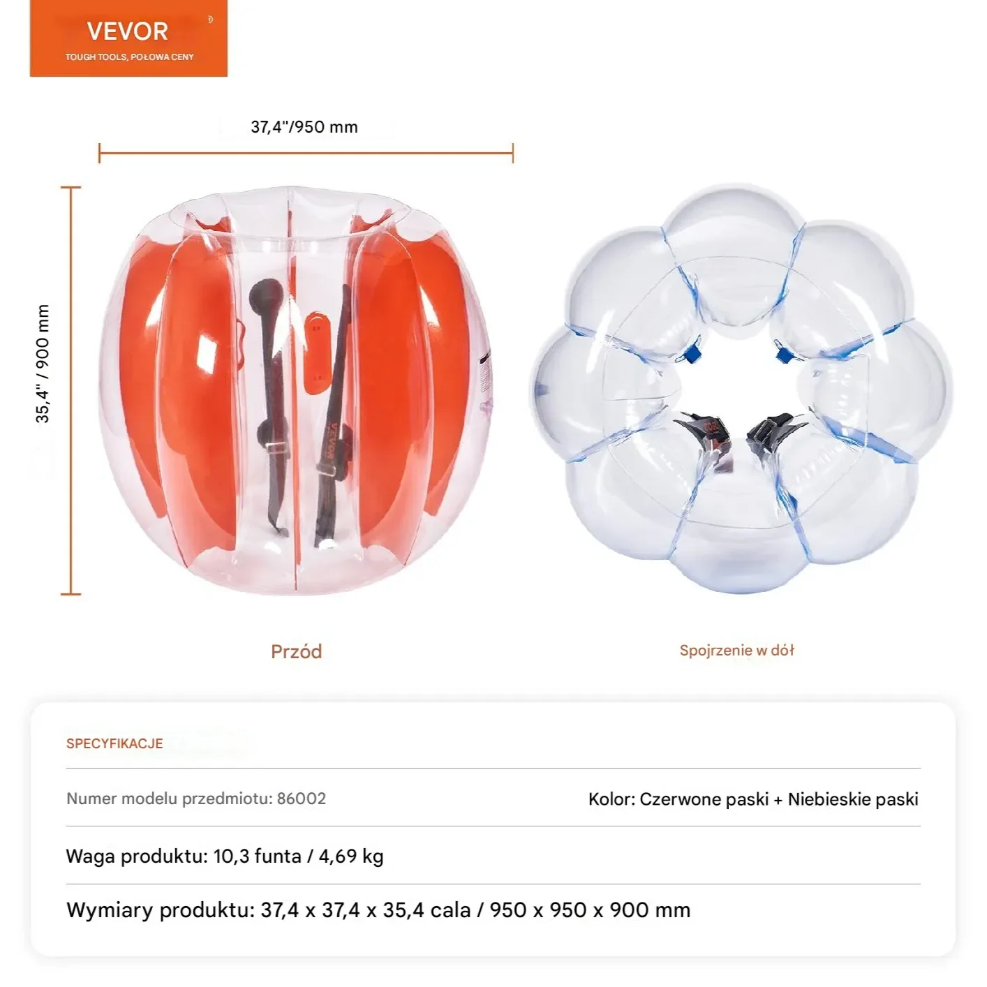 - 1 x nadmuchiwana kula zderzakowa 1,5 m