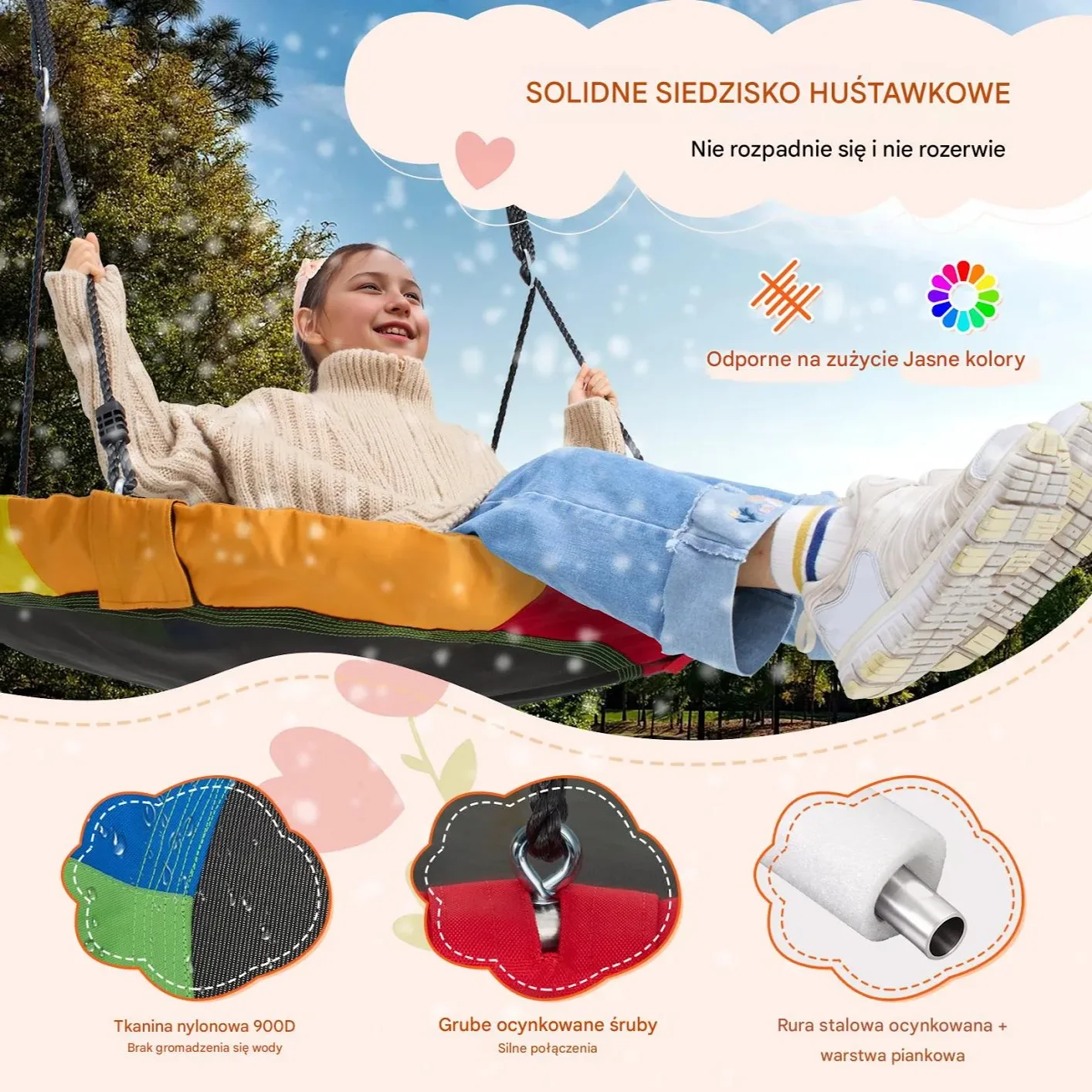 Huśtawka bocianie gniazdo 100cm 340kg kolorowa ogrodowa