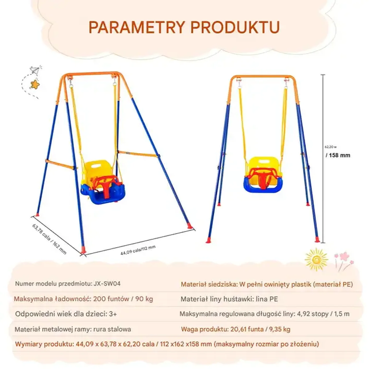 ✔ Maksymalna nośność 200 kg – bezpieczna zarówno dla dzieci, jak i dorosłych.