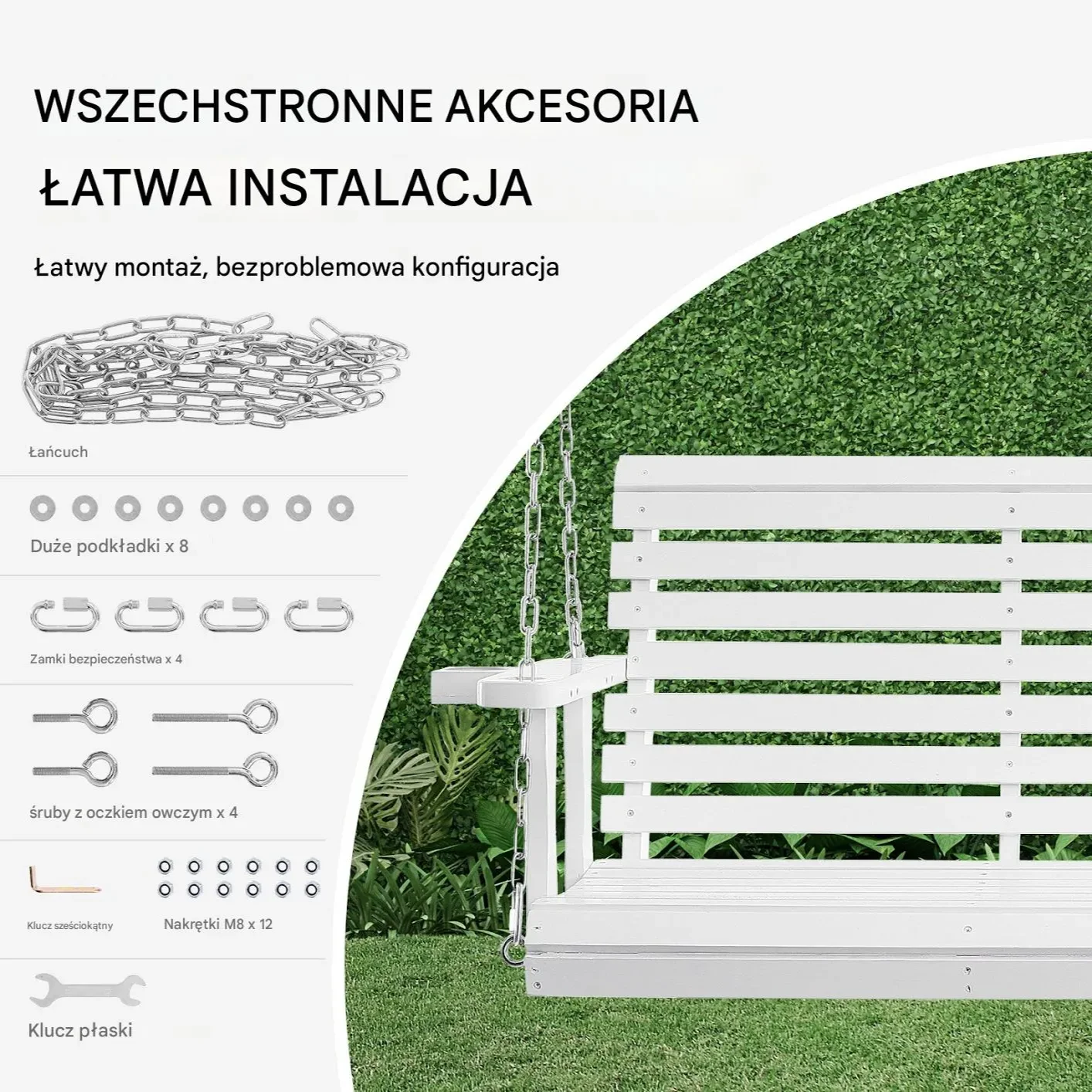 Stwórz doskonałe miejsce do relaksu i zabawy w swoim ogrodzie! Zestaw huśtawki ogrodowej 100 cm z metalowym stelażem to idealne rozwiązanie dla dzieci i dorosłych, którzy chcą cieszyć się bezpiecznym huśtaniem na świeżym powietrzu. Dzięki maksymalnej nośności 200 kg, huśtawka zapewnia komfort i trwałość, a wytrzymały stalowy stelaż gwarantuje stabilność i odporność na warunki atmosferyczne.