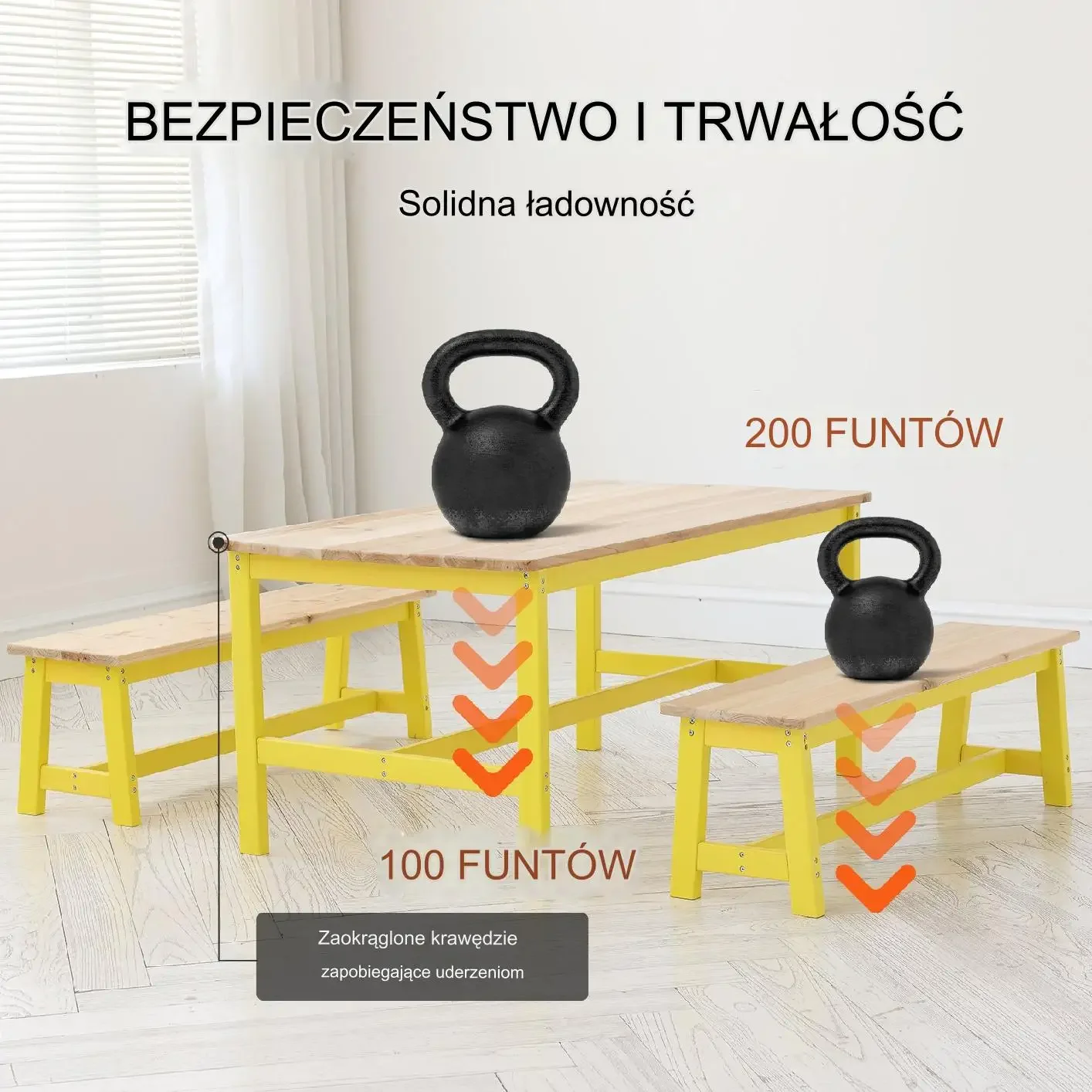 Zestaw Mebli dla Dzieci Stolik i 2 Ławeczki