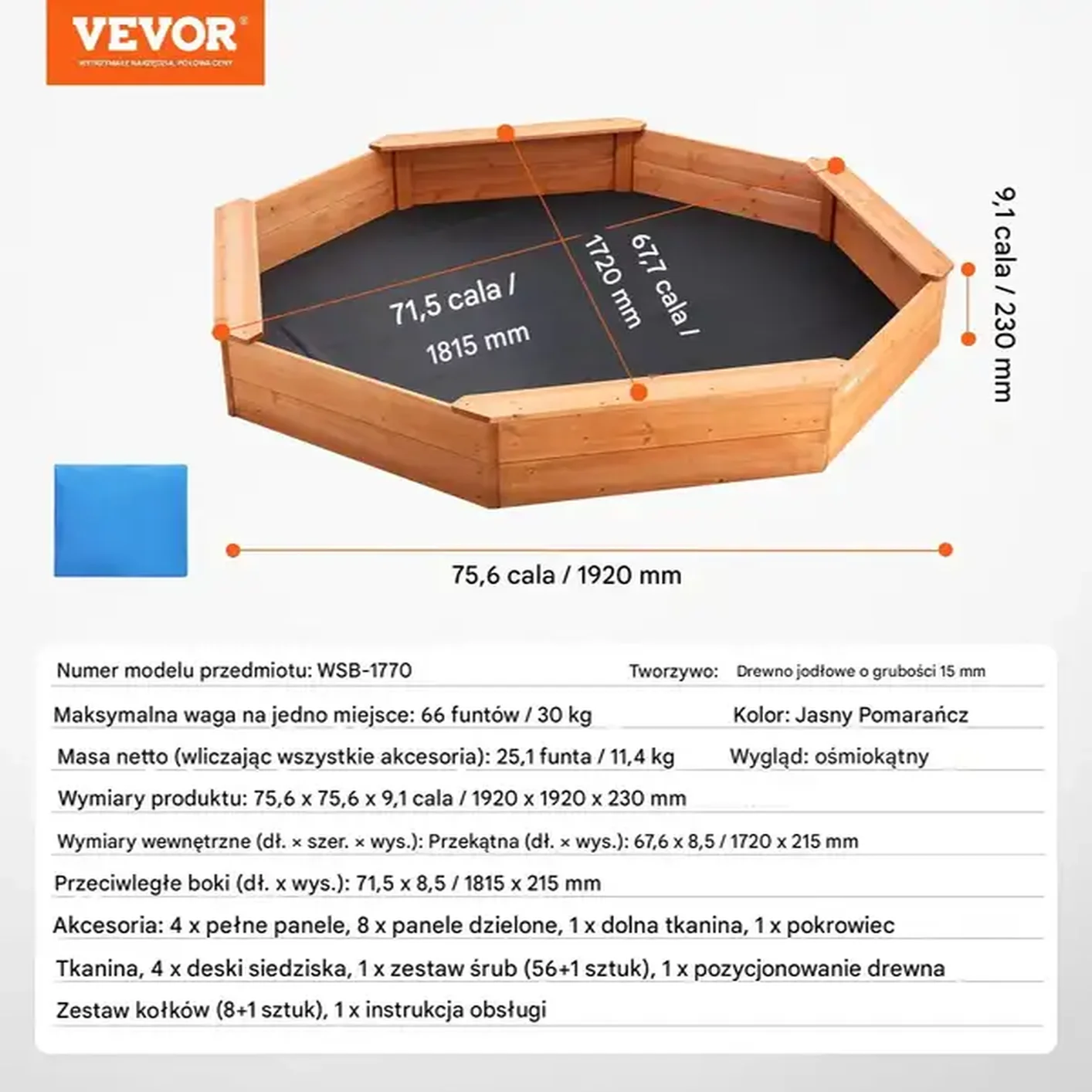 ✔ Drewniana piaskownica ośmioboczna