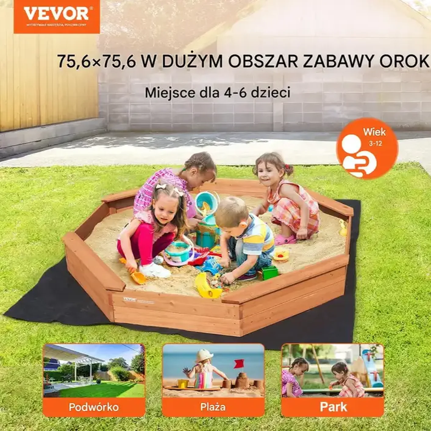 ✔ Praktyczna pokrywa – chroni piasek przed deszczem, liśćmi i zanieczyszczeniami.
