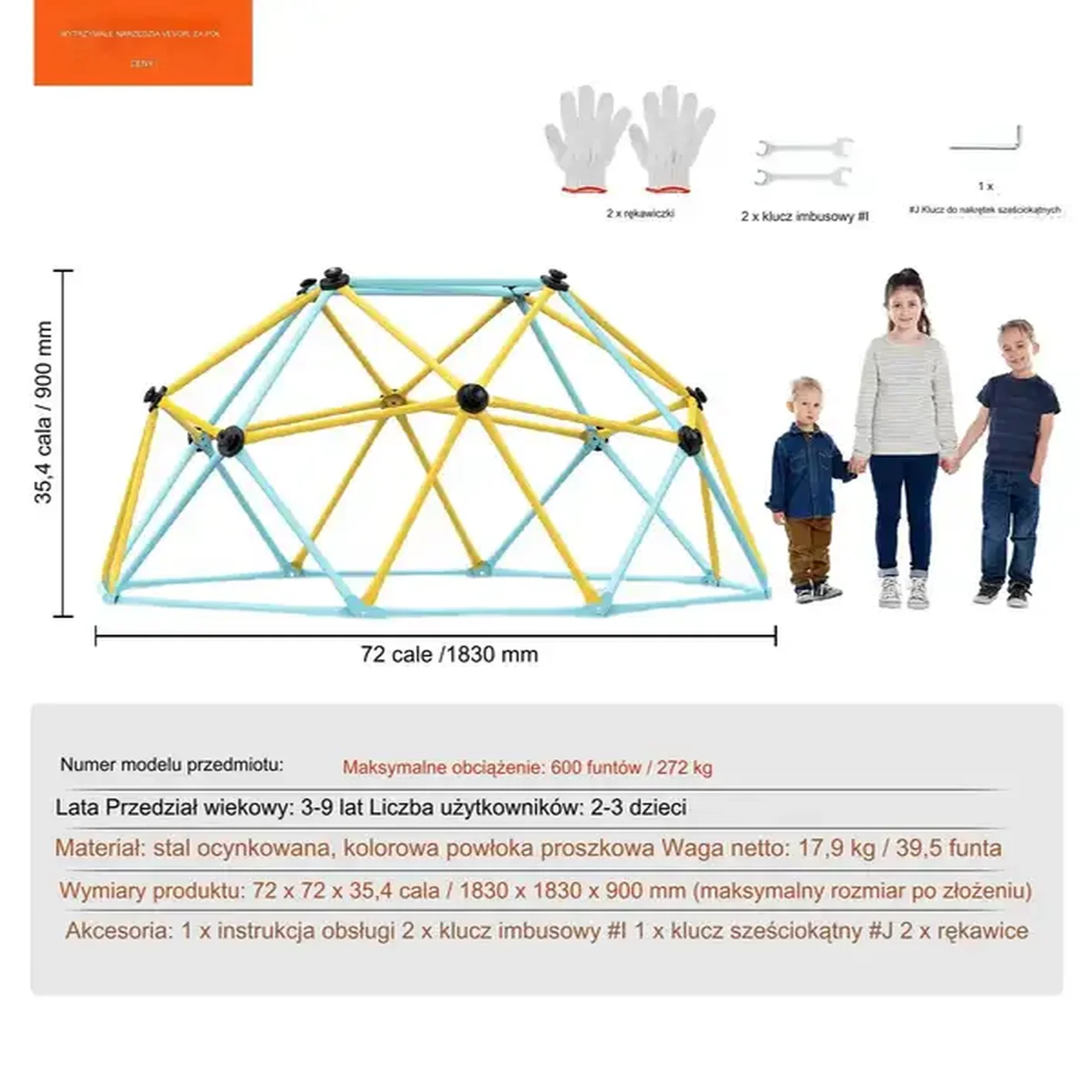 Kopuła wspinaczkowa metalowa 1,8 m – solidna drabinka do ogrodu, łatwy montaż, maksimum zabawy!