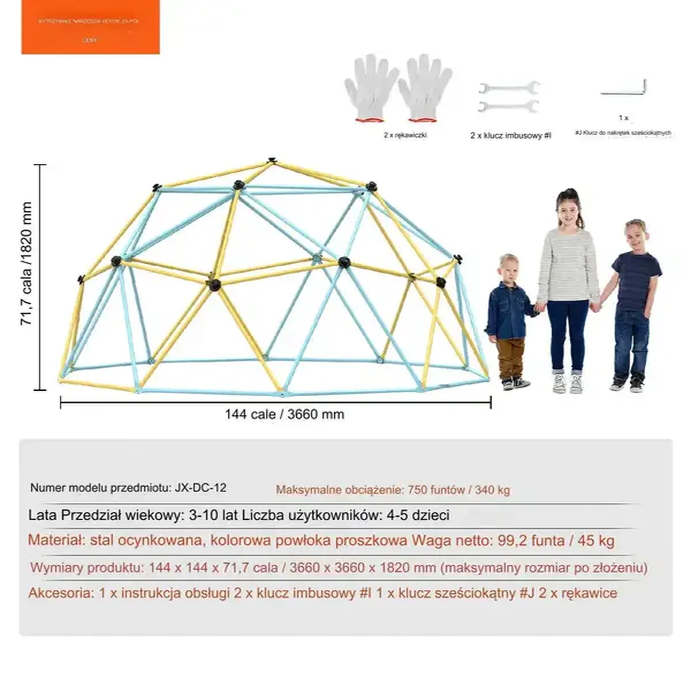Kopuła wspinaczkowa metalowa ogród drabinka solidna łatwy montaż 3.6m