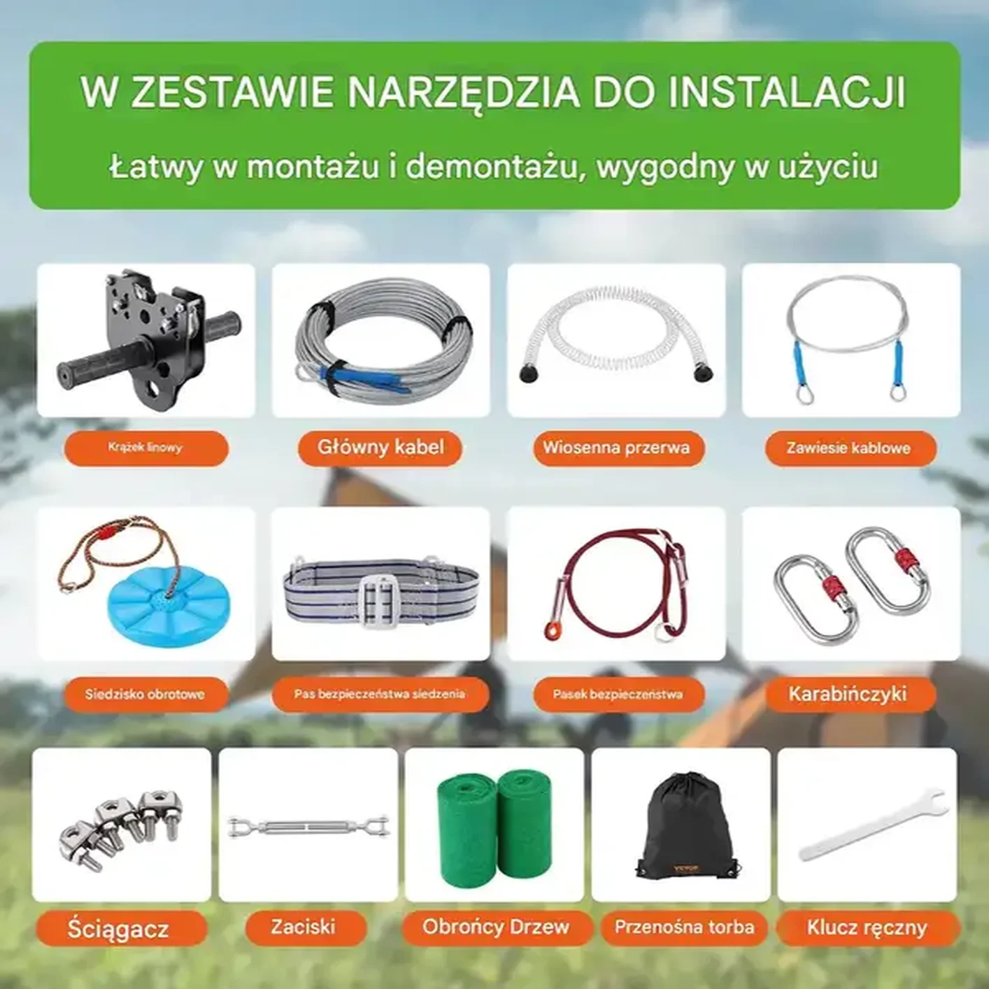 Start / Sklep / Dziecko / Zabawki ogrodowe / Place zabaw / Tyrolka dla dzieci i dorosłych 36,6 m stalowy linka hamulec bezpieczeństwa
