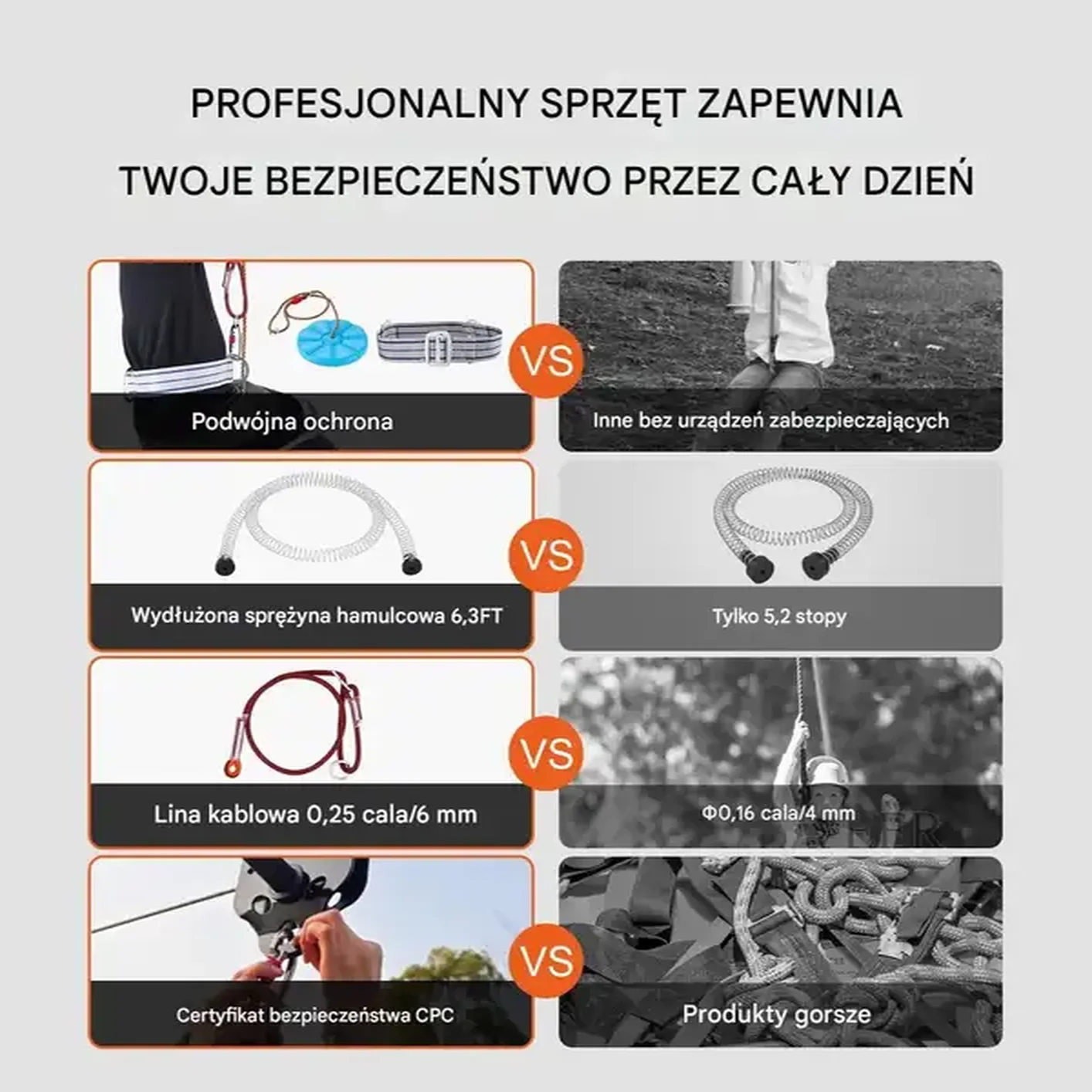 - ✅ Podwójna ochrona: Pasy bezpieczeństwa i uprząż linowa znacząco redukują ryzyko urazów