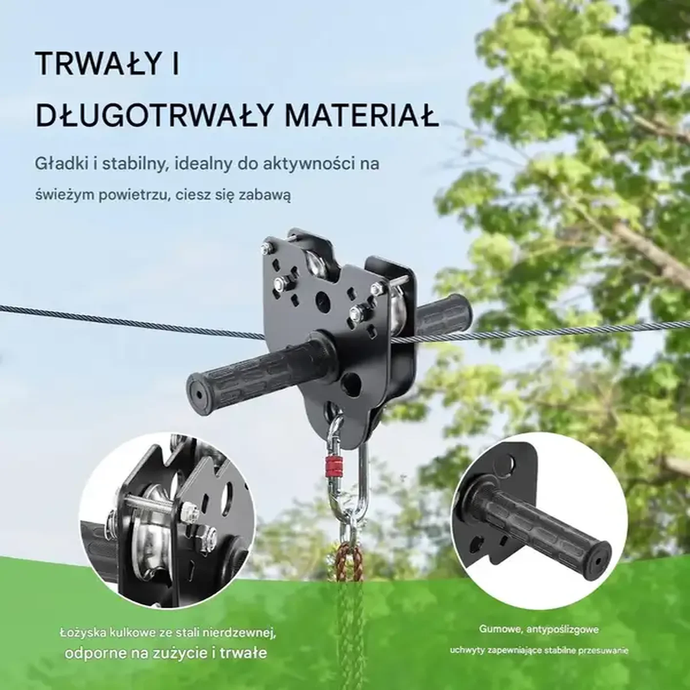- ➡️ Wysoka wytrzymałość: Linka i hamulec ze stali nierdzewnej wytrzymają nawet dorosłych