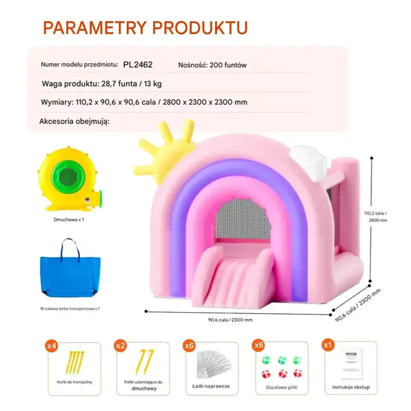 - ✅ Wydajna dmuchawa 450 W – nadmuchanie w mniej niż 3 minuty.