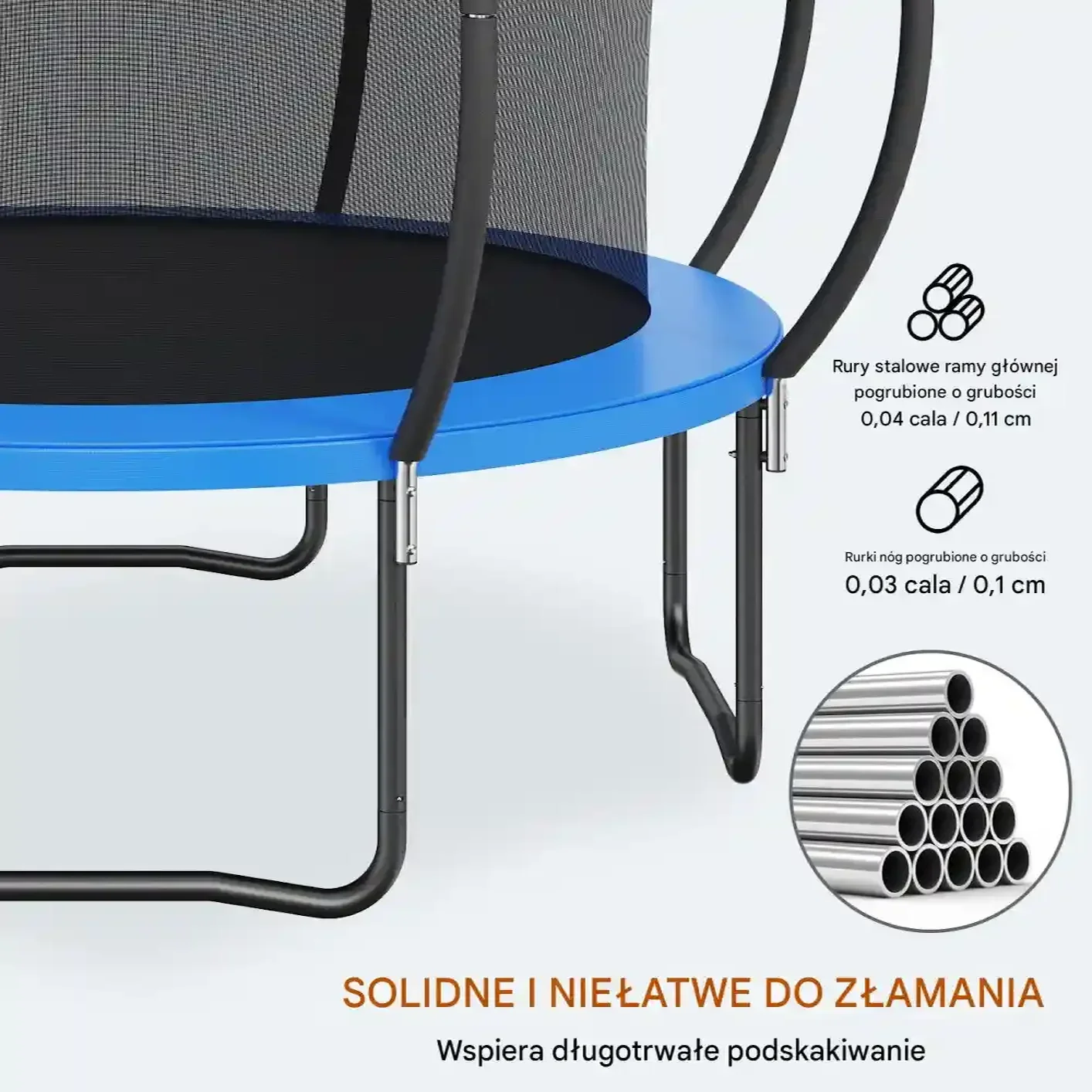 - ✅ Solidna i bezpieczna rama: wykonana ze stali, wyposażona w antypoślizgowe nóżki oraz elastyczną matę z polipropylenu.