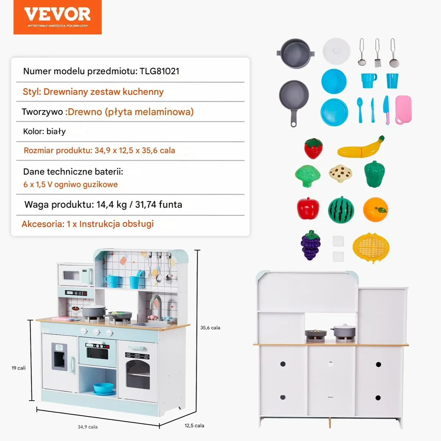 - ✅ 48 akcesoriów: Bogaty zestaw naczyń, żywności i narzędzi kuchennych wspiera rozwój dziecka.